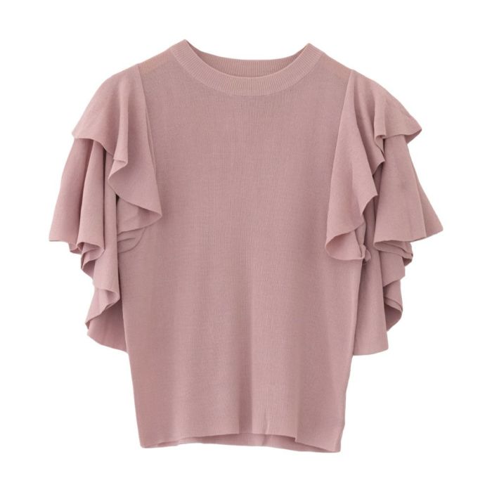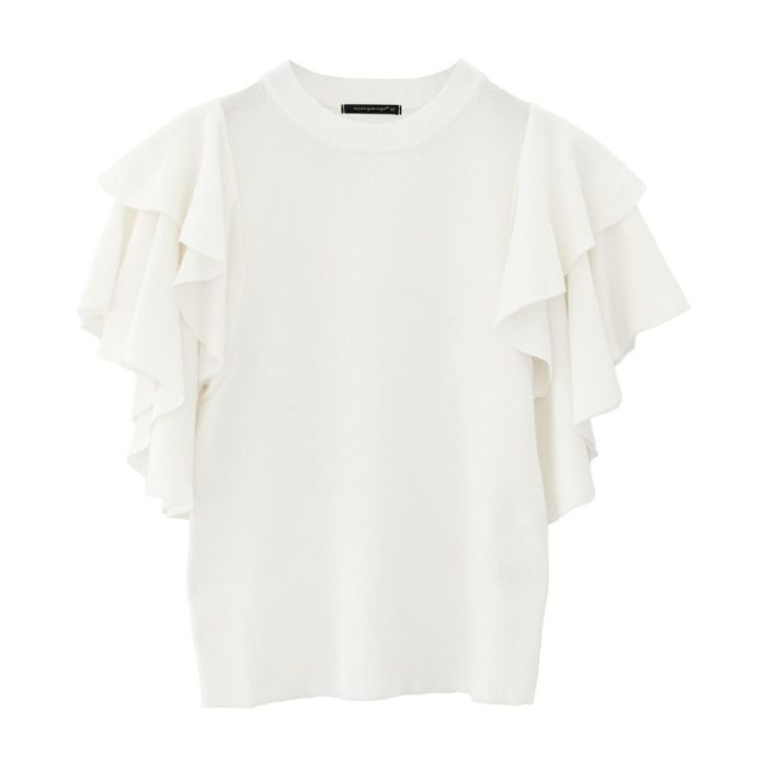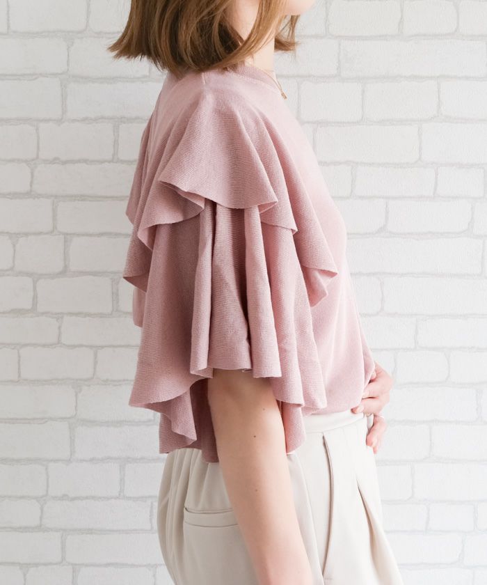 • 可愛いだけでなく、二の腕もカバーしてくれるダブルフリルスリーブサマーニット
