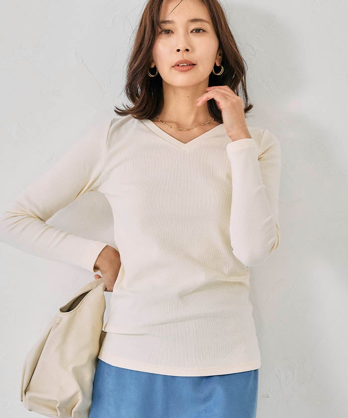 肌に優しく寄り添うリブカットソーは、しなやかで着心地の良い素材感が魅力。