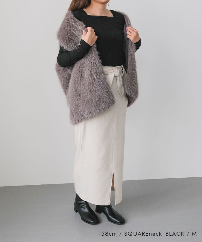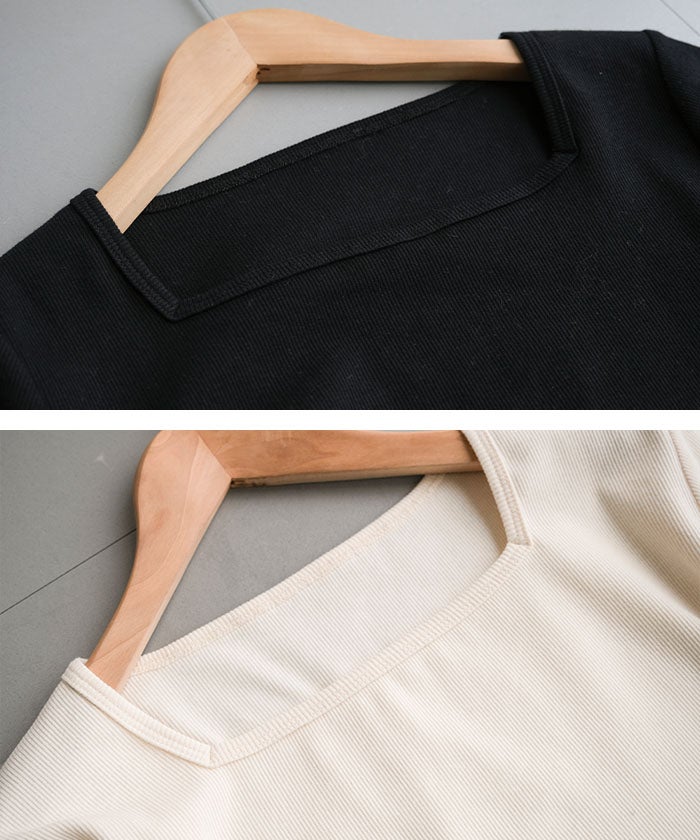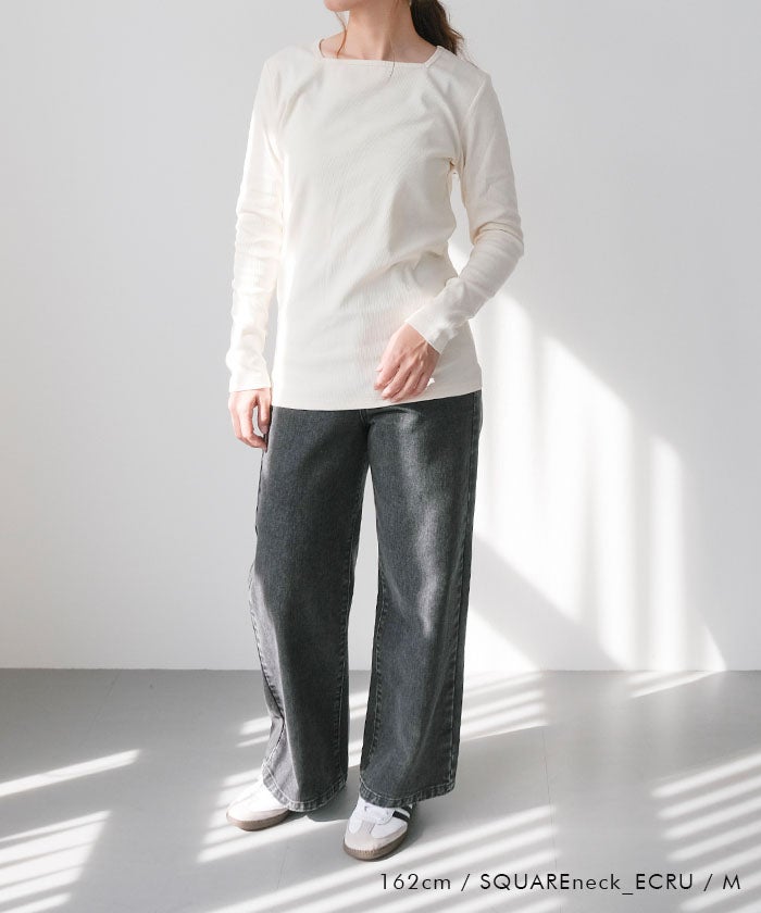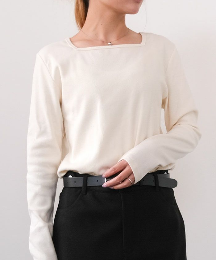 スクエアネックはトレンド感と上品さを両立した大人のムードを演出します。