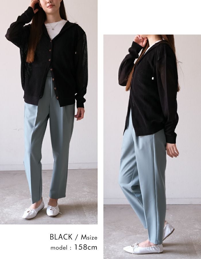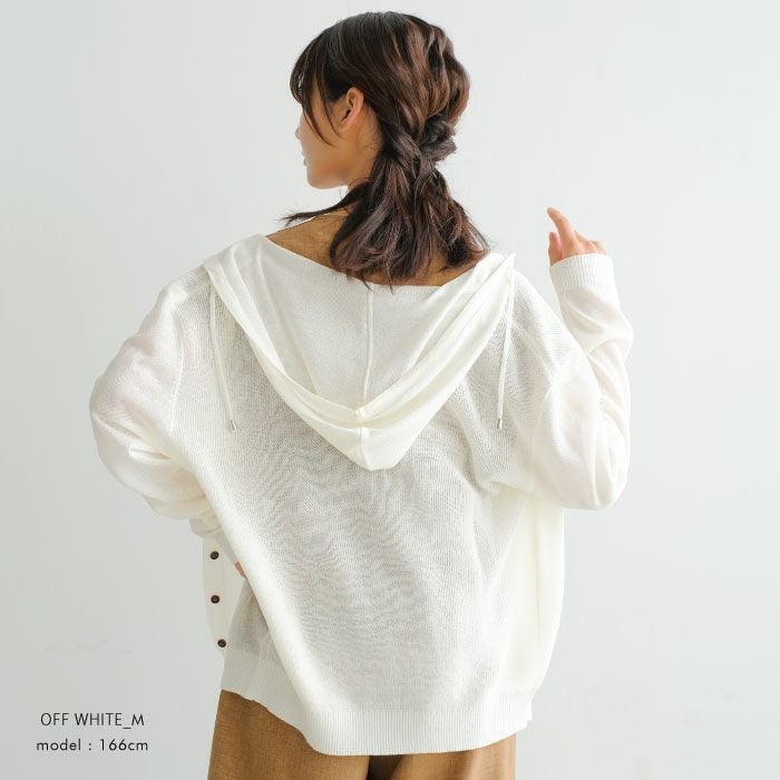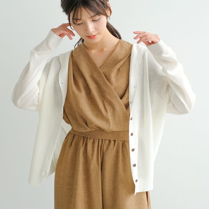 さらっと羽織れて冷房対策もできるサマーニットカーディガン。 少し透ける肌がこなれた女性らしい印象に。 通気性に優れているので、汗ばむ季節には嬉しいポイント◎ 前ボタンの開閉でトップスにもカーデにもアレンジ可能です。