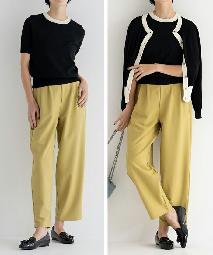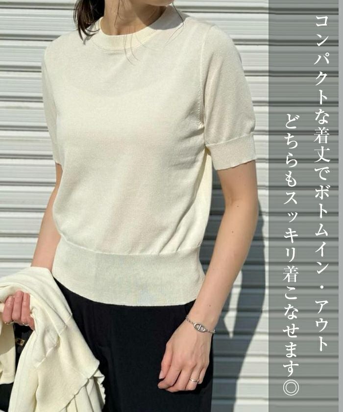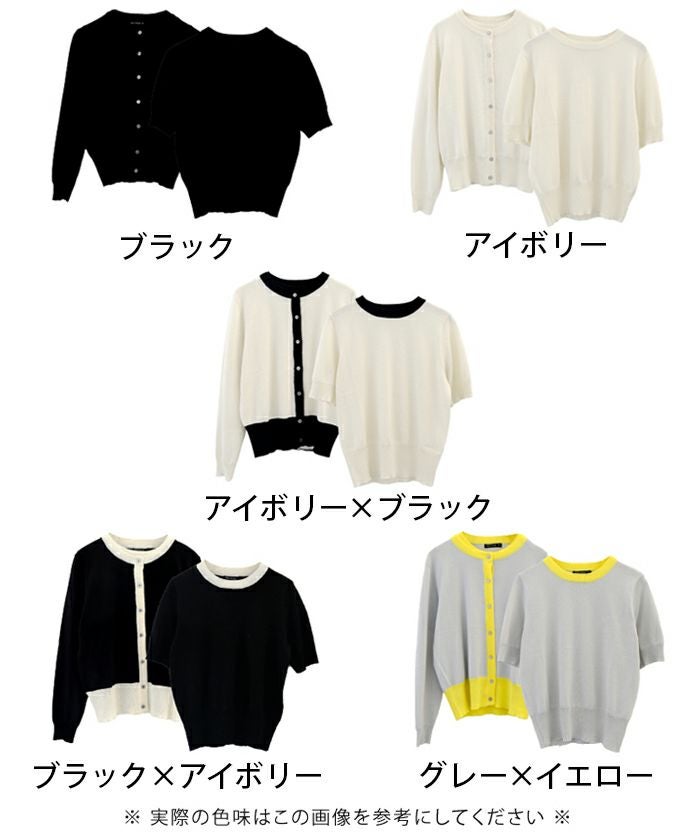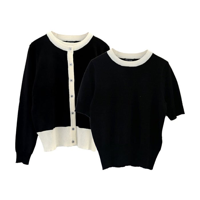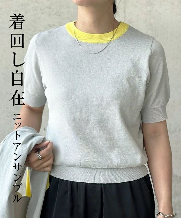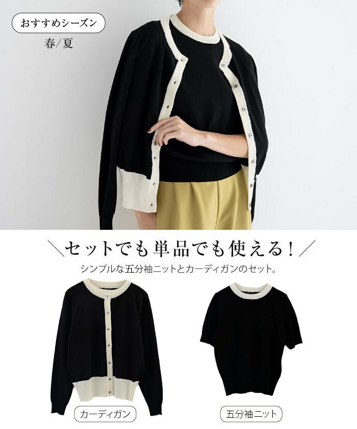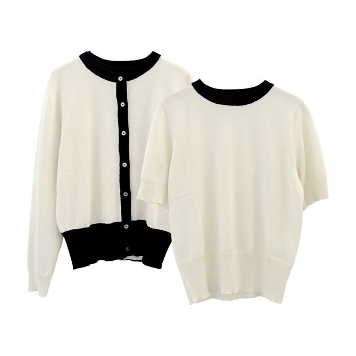 半袖ニットと長袖カーディガンがセットになった万能アンサンブル。