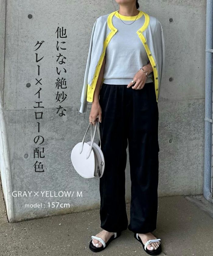 シルバー&イエローにしました。 普段より大きめのLサイズにしました。着丈はやや長くバランスが悪いかなぁって感じですが、問題ないです。肌触りも良く、クーラーの効いてる電車やカフェなど、夏場にも重宝しそうです。