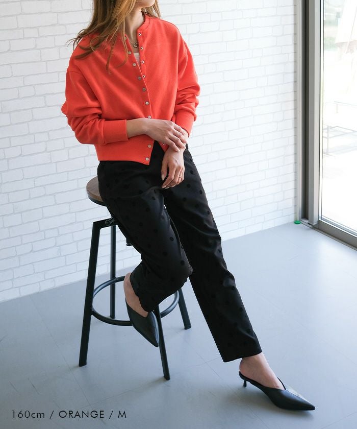 フロントに並ぶスナップボタンが程よいアクセントとなり、着こなしに大人っぽさをプラスしてくれます。
