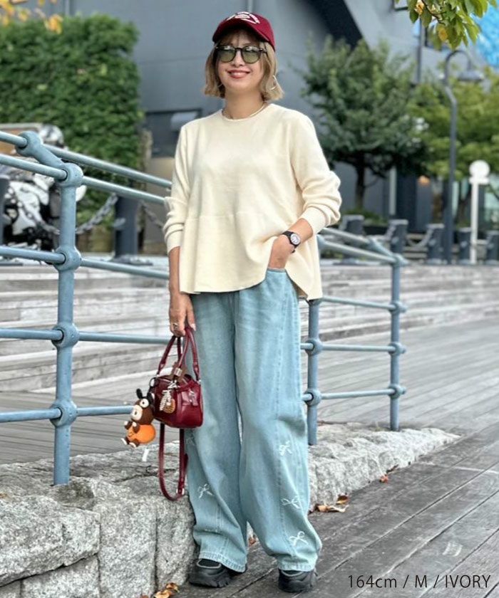 このトップスの魅力を最大限に引き立てるなら、すっきりとしたボトムスを合わせるのがおすすめです。