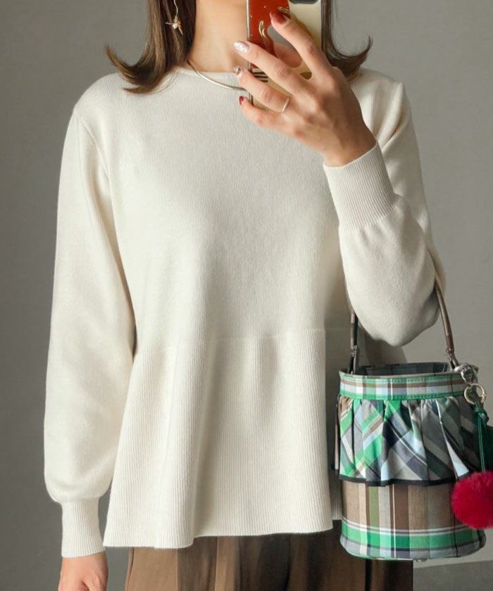細身のデニムやスラックスにさらりとイン。ウエストの絞りとフレアが自然に映え、スタイルアップ効果は抜群です。