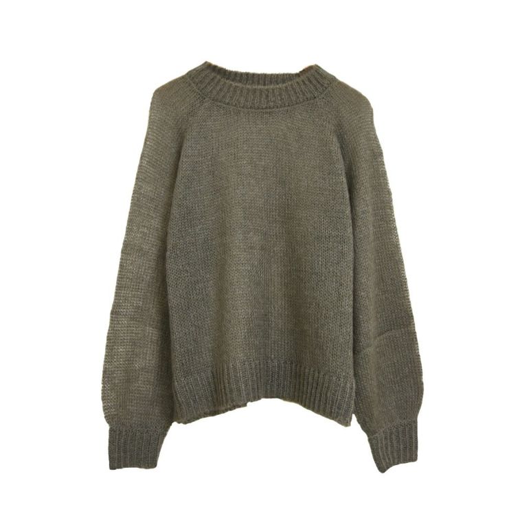 透け感のある編地がスタイリングに抜け感のある女性らしさをプラス。ゆったりとしたシルエットと少し長めの袖丈で華奢見せ効果も◎トレンドのくすんだ色味がお洒落で、コーデに取り入れやすい1枚です。