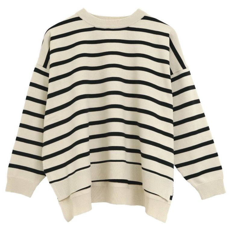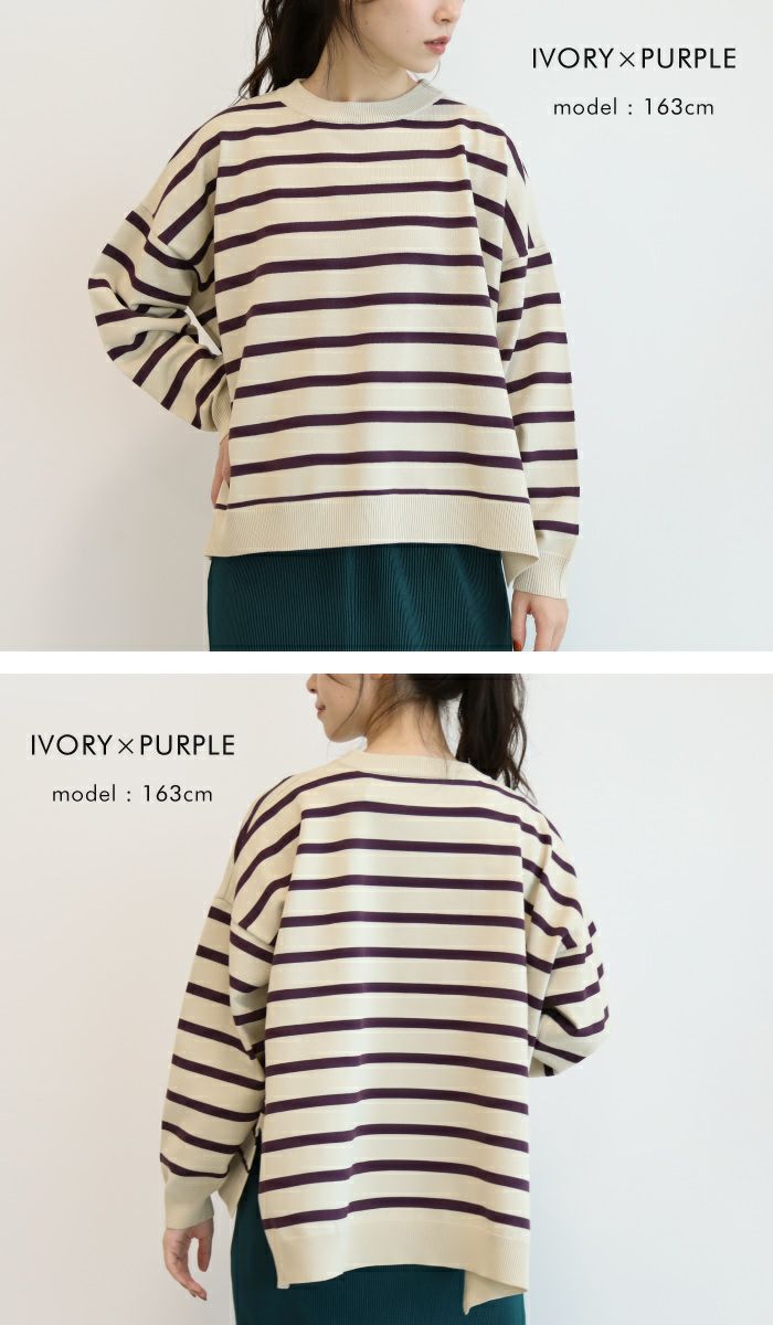ボーダー柄ニットトップス レディース 春 秋 冬 長袖 | アクアガレージ aquagarage