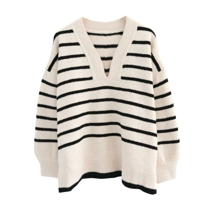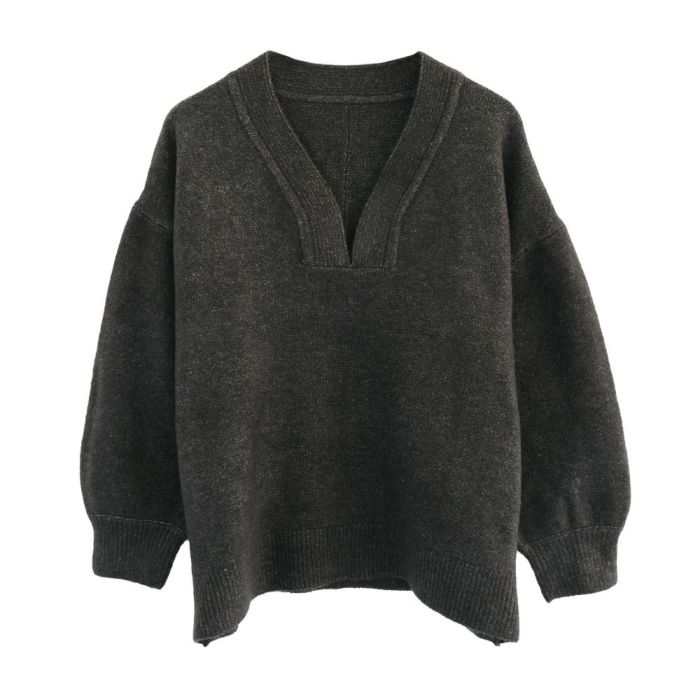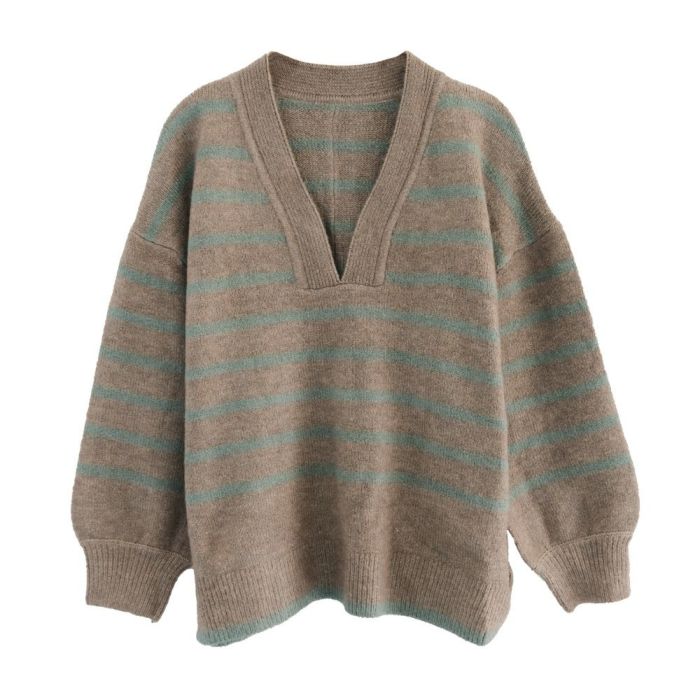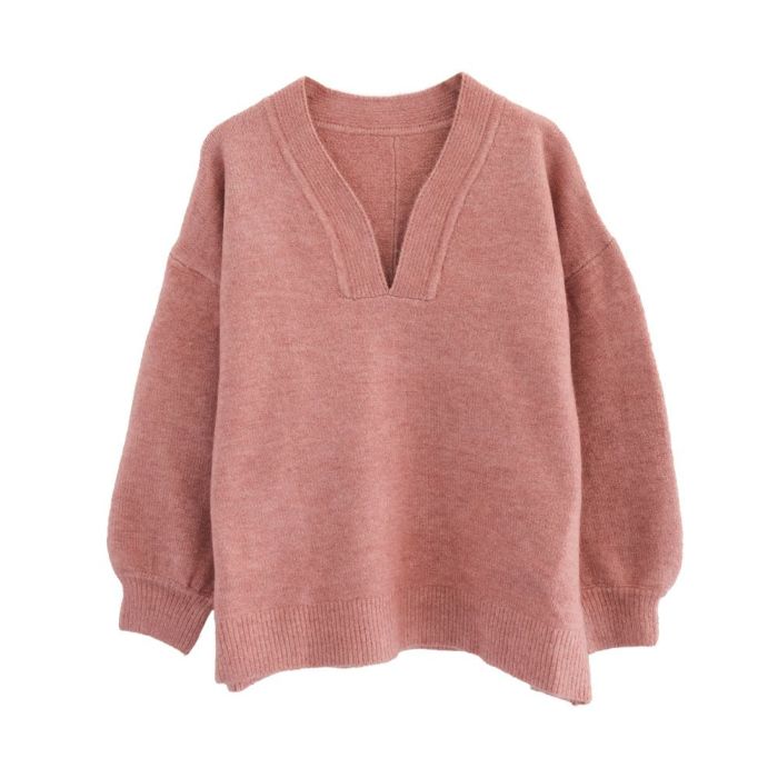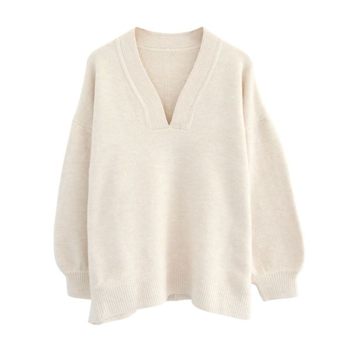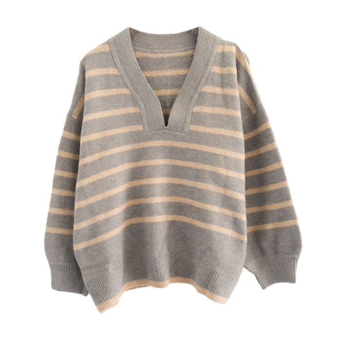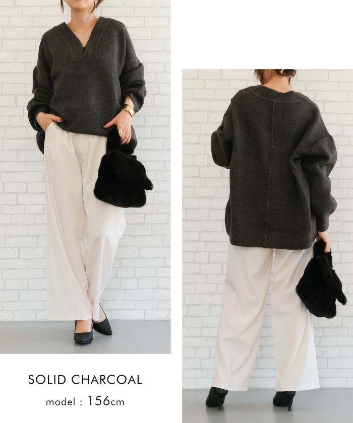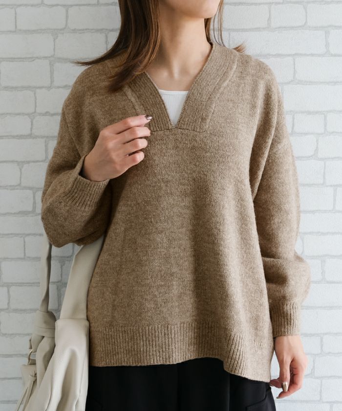 • ゆるっとシルエットでこなれた印象の深Vネックニットトップス。