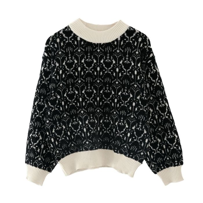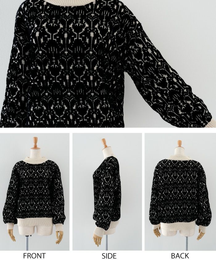 送料無料 ダマスク柄ジャガードニットトップス 春 秋 冬 M | アクアガレージ aquagarage