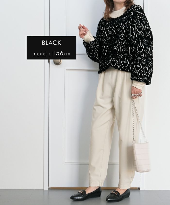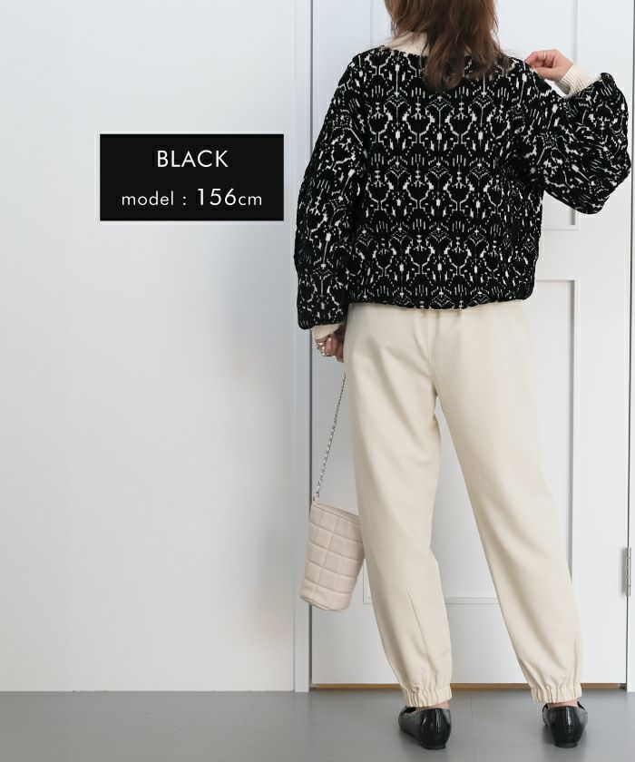 • 上品な雰囲気のダマスク柄ジャガードニットトップス