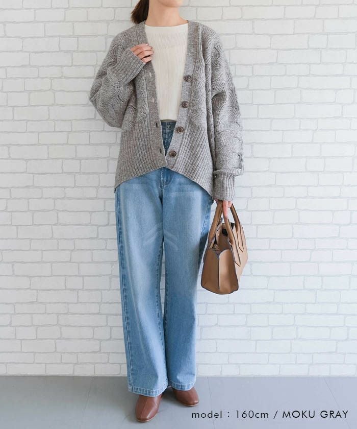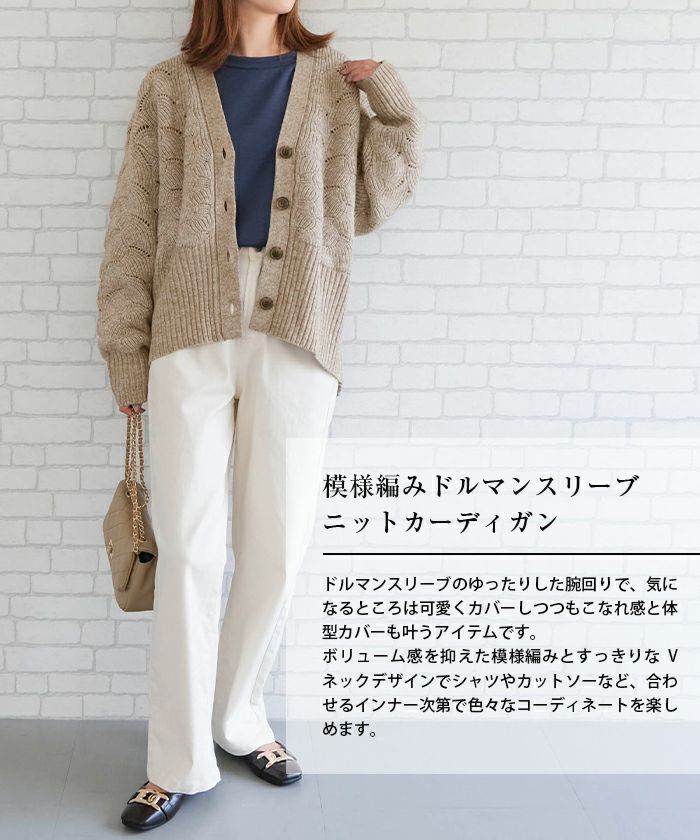 送料無料 模様編みドルマンスリーブニットカーディガン レディース | アクアガレージ aquagarage