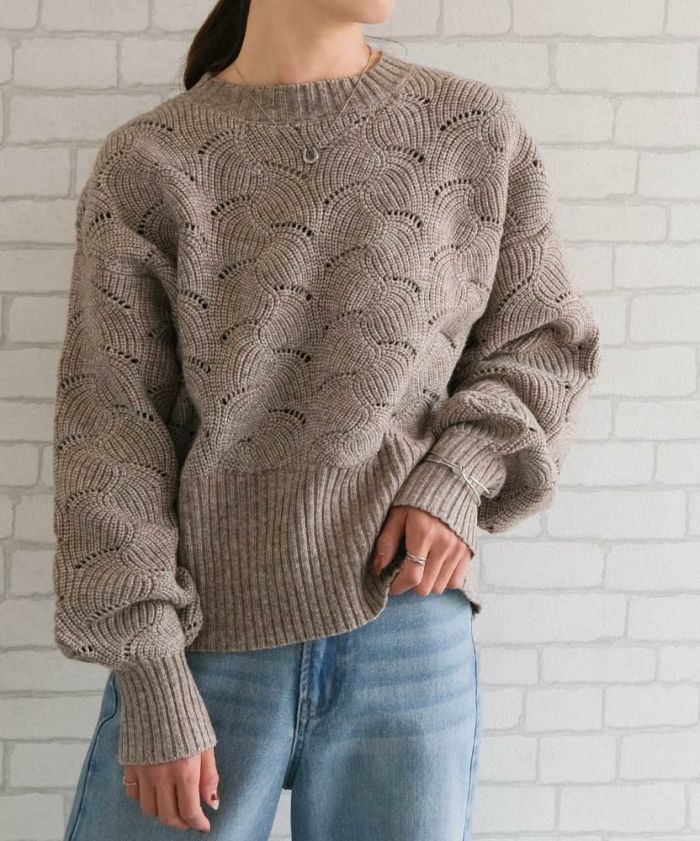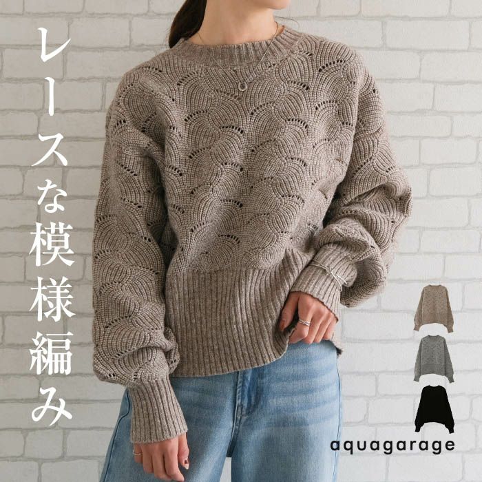 模様編みドルマンスリーブニットトップス レディース | アクアガレージ aquagarage