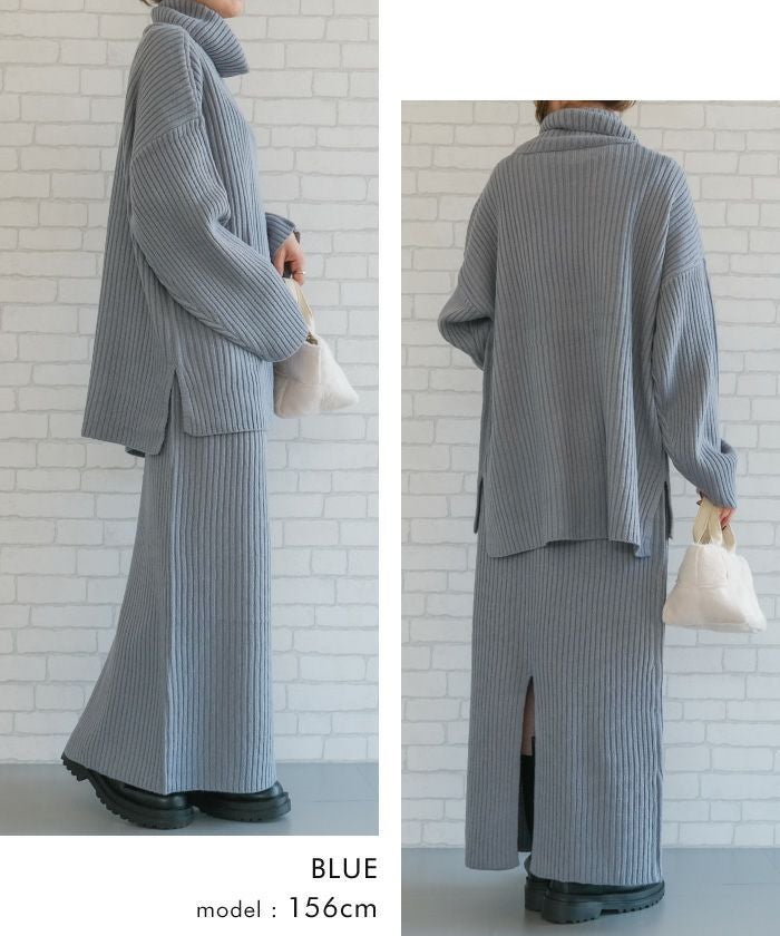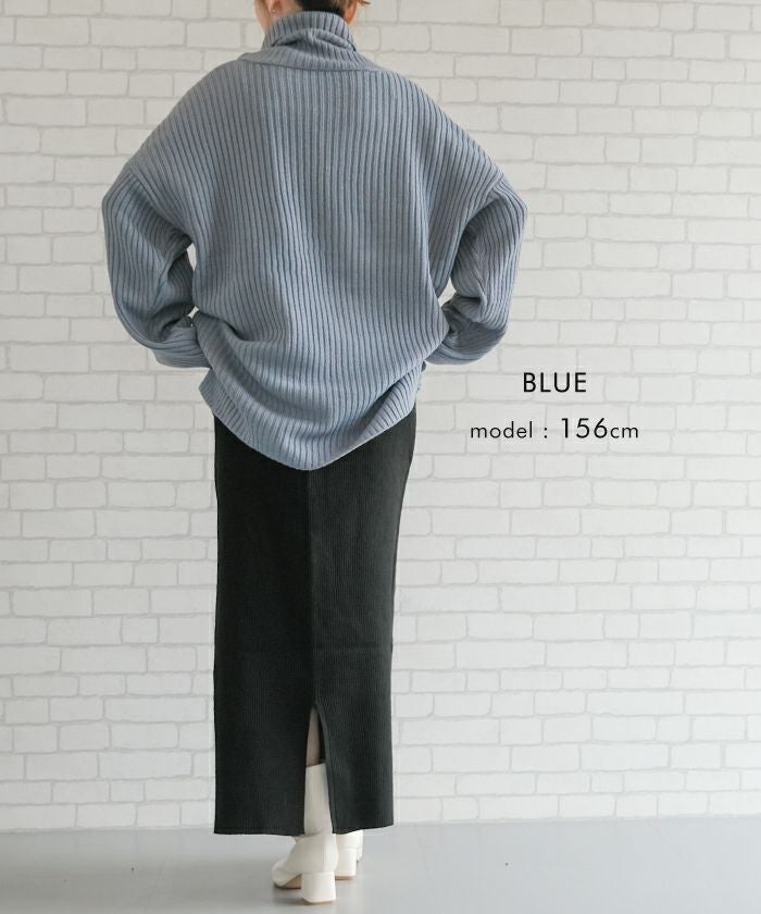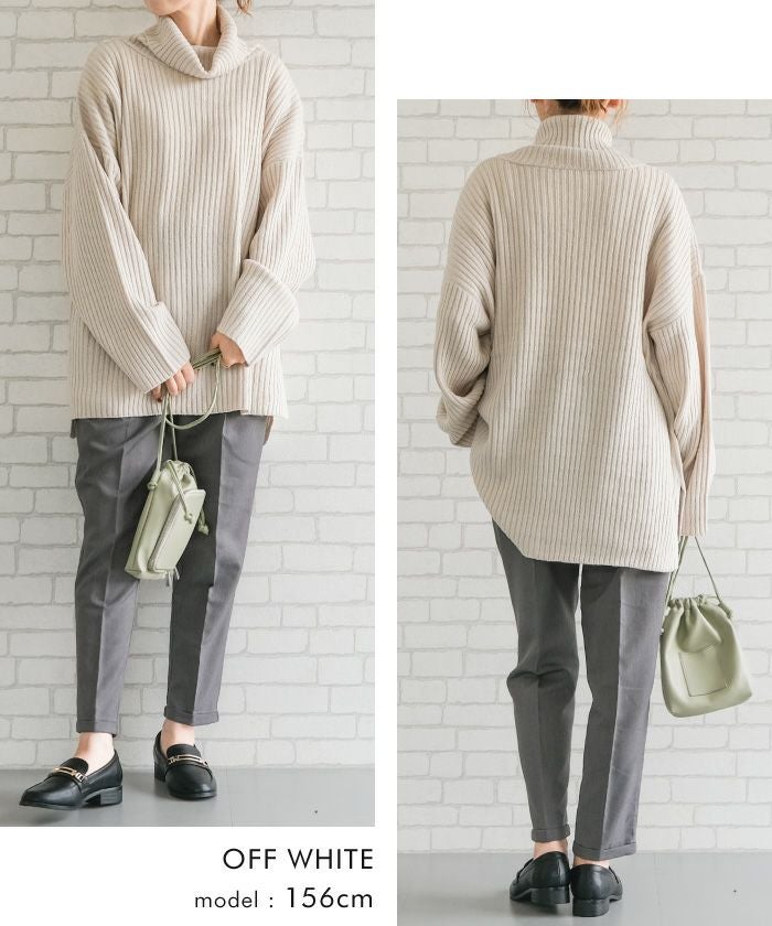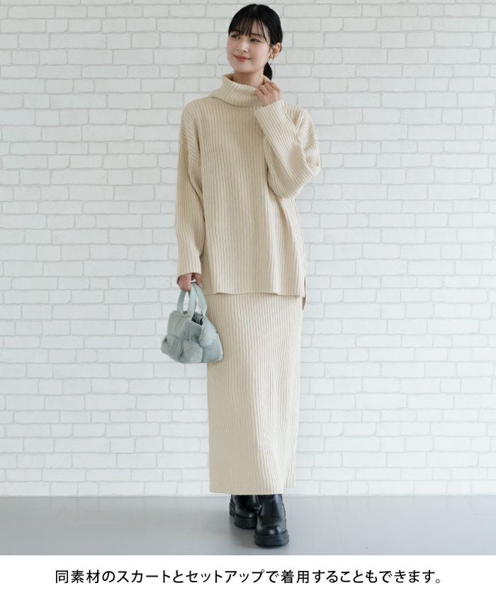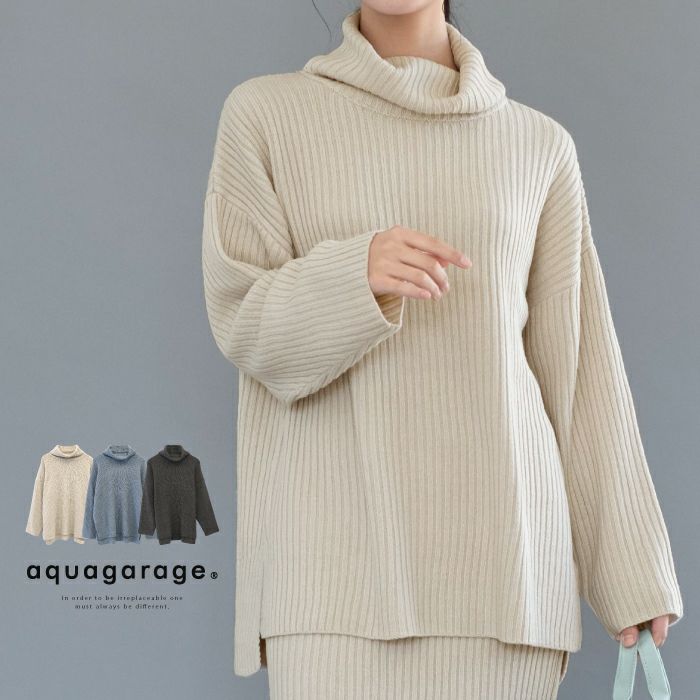 送料無料 【セットアップ可】リブニットタートルロングプルオーバー レディース 春 秋 冬 | アクアガレージ aquagarage