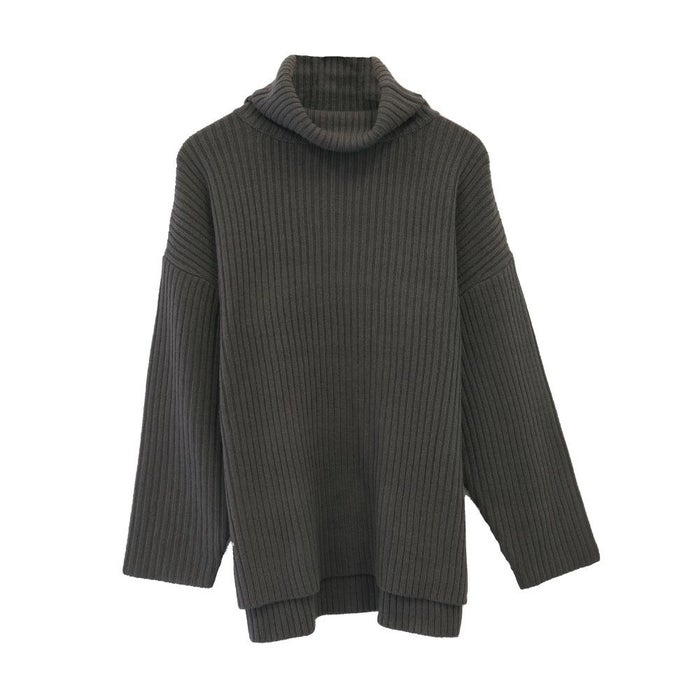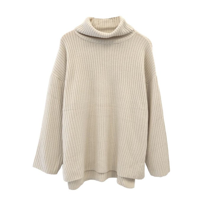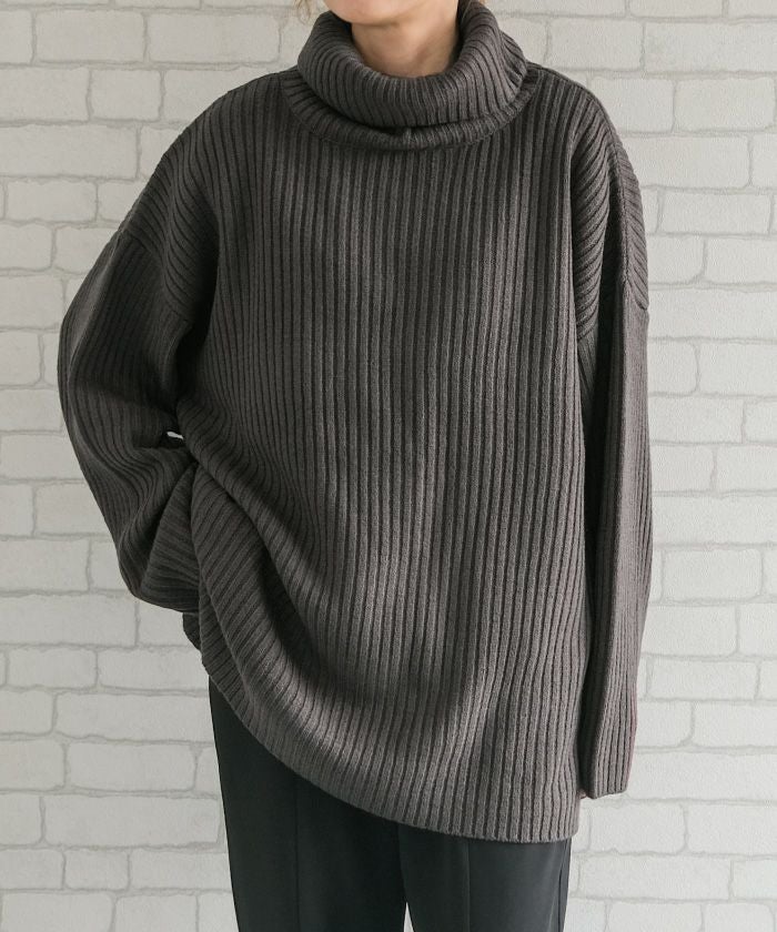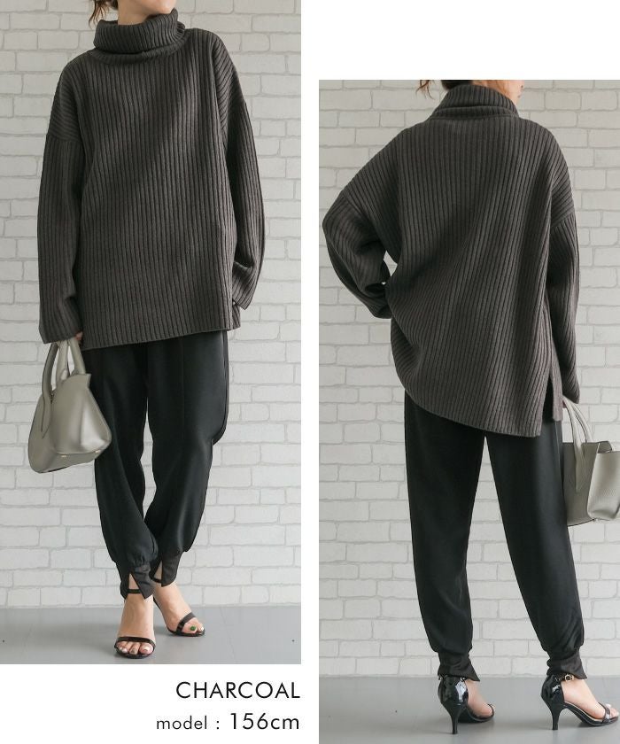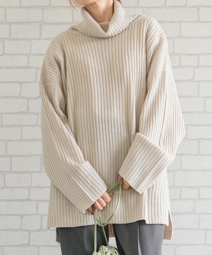 • シンプルだけど一枚で様になるリブニットタートルロングプルオーバー