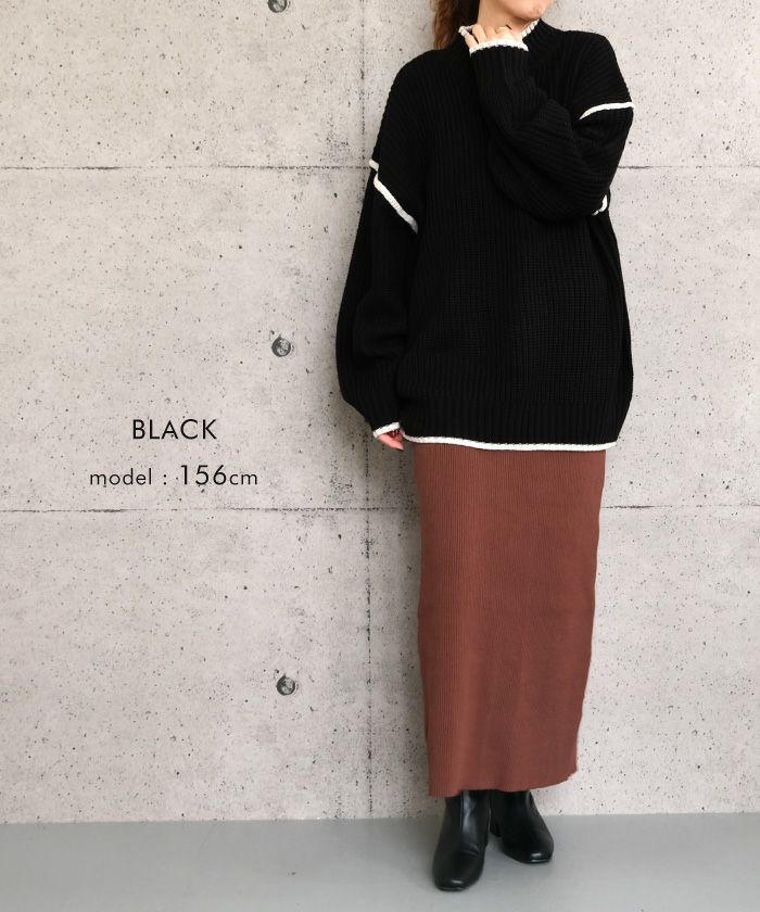 送料無料 バイカラーモックネックニットトップス レディース 春 秋 冬 | アクアガレージ aquagarage