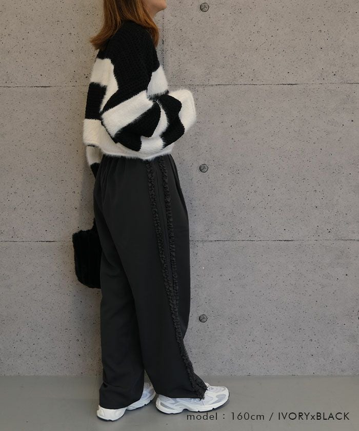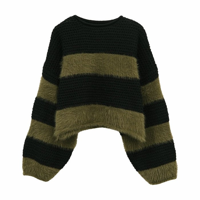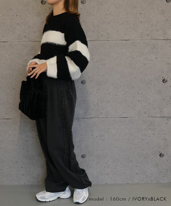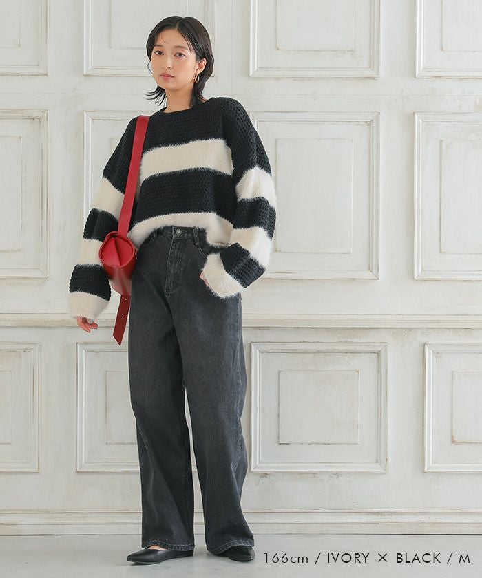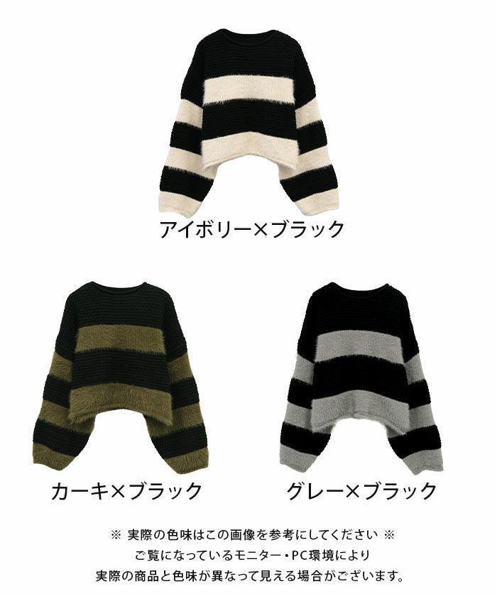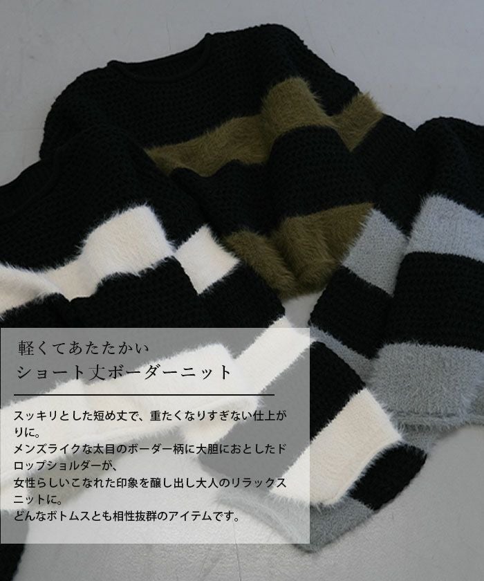 • 軽くてあたたかいショート丈ボーダーニット