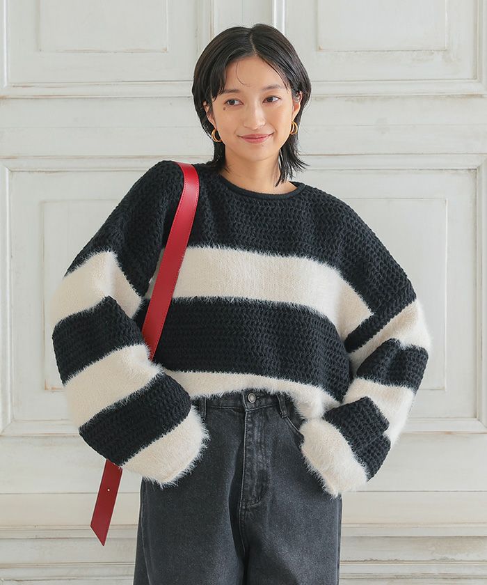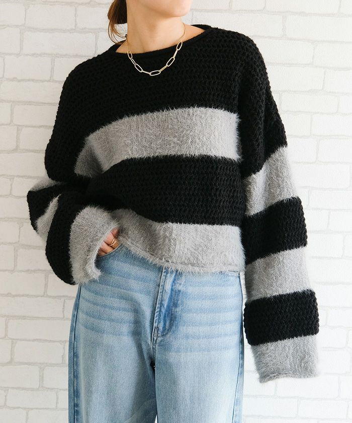 ショート丈ボーダーニット 秋 冬 レディース | アクアガレージ aquagarage