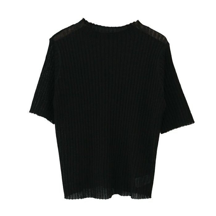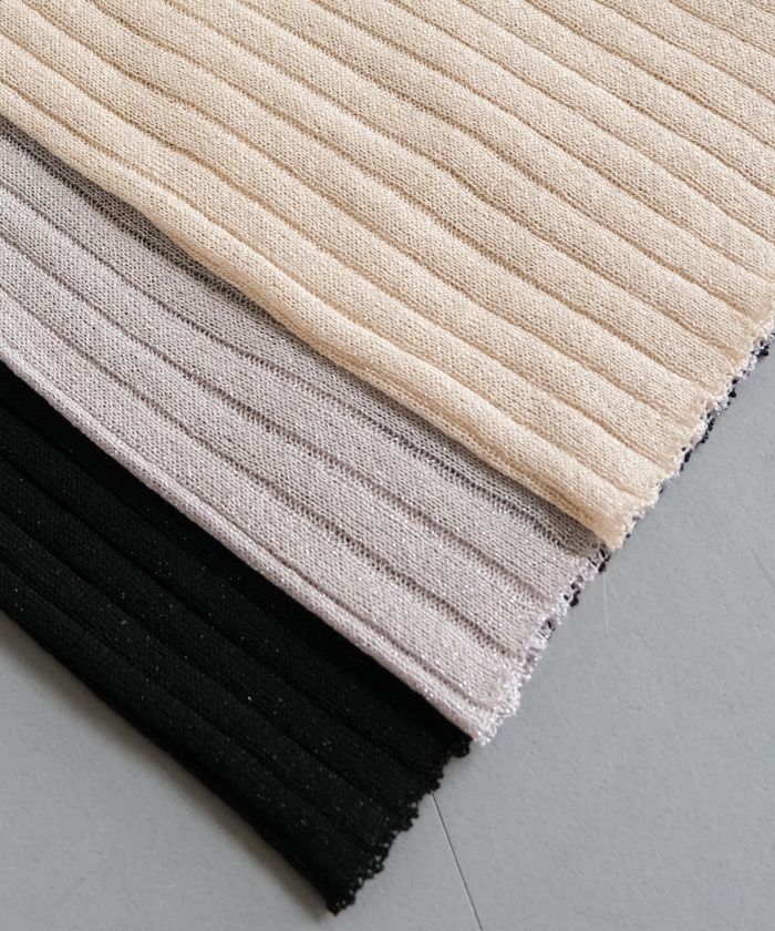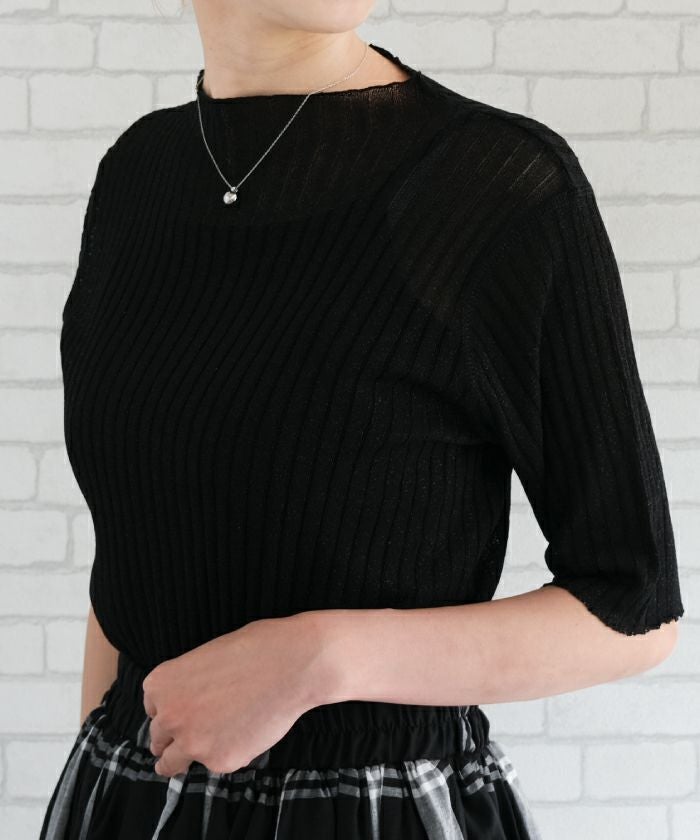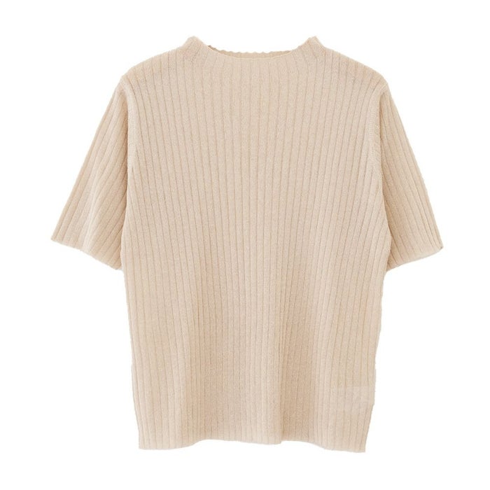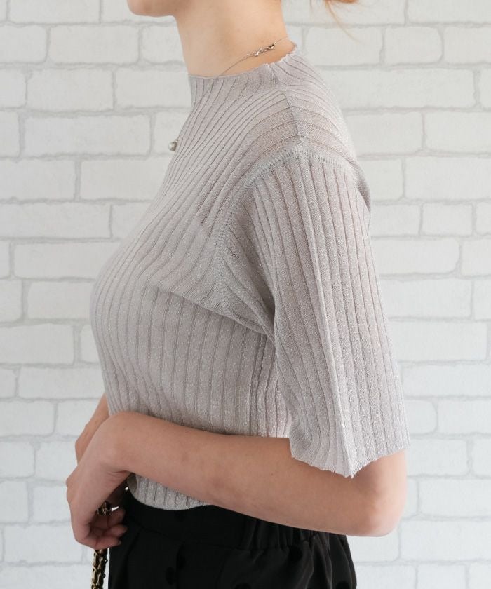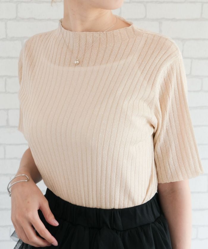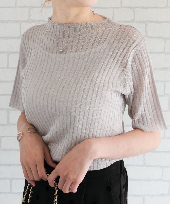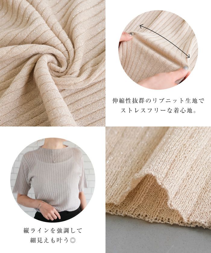 送料無料 シアーラメ半袖リブニットトップス 春 夏 秋 M レディース ≪ゆうメール便配送10・代引不可≫ | | アクアガレージ aquagarage