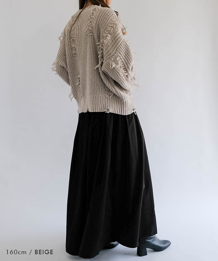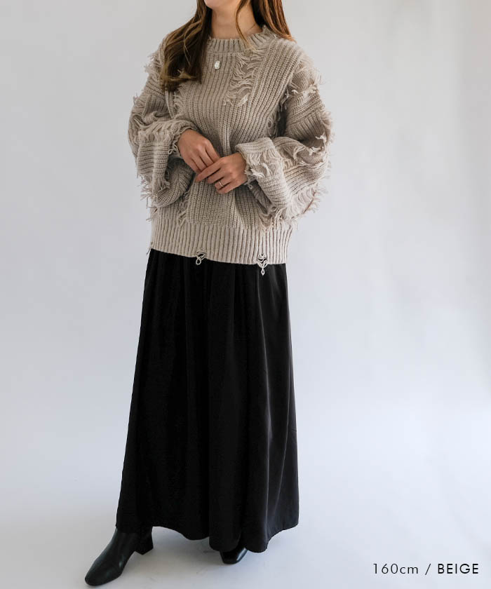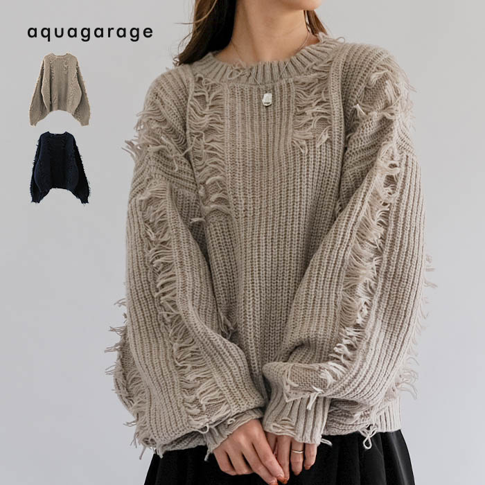 送料無料 ダメージフリンジニットトップス 秋 冬 M レディース | アクアガレージ aquagarage