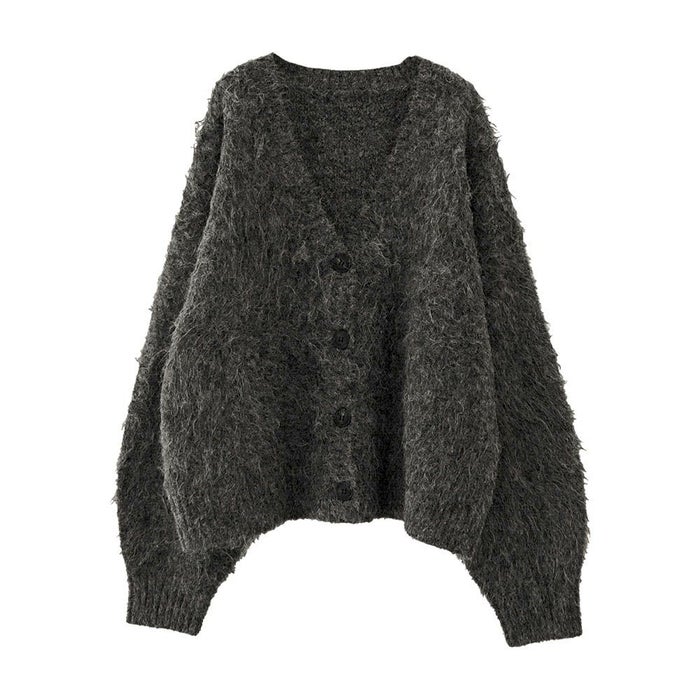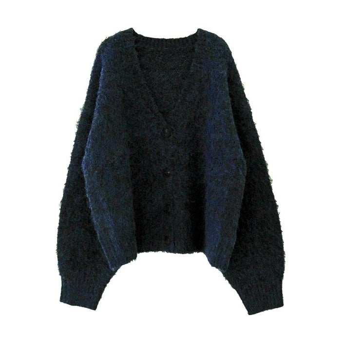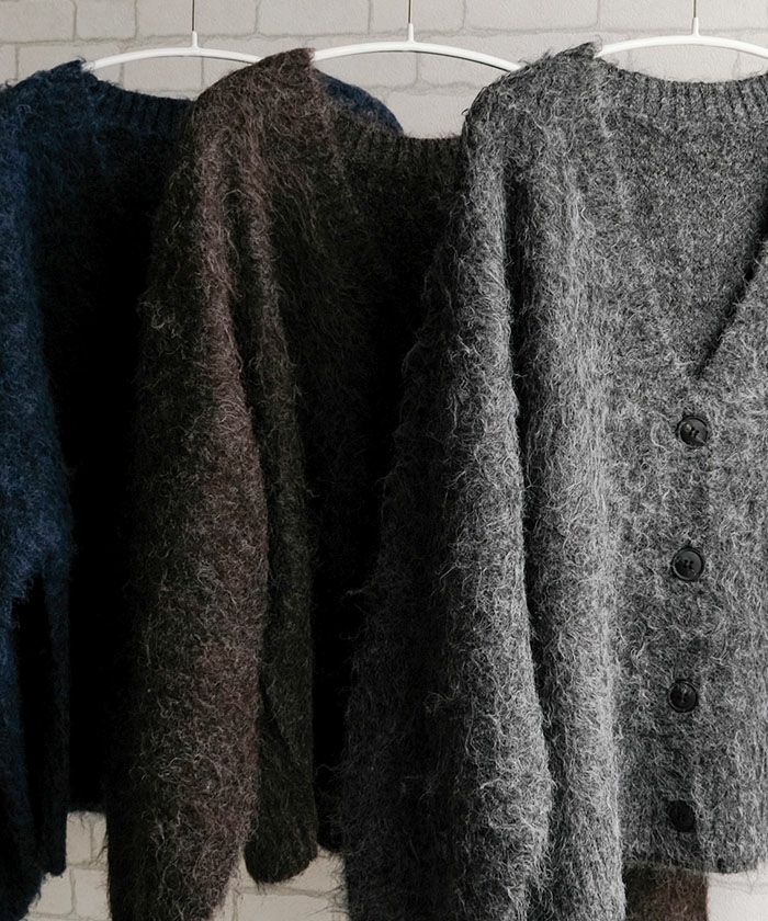 思わず触れたくなるような、ふわふわのMIXシャギーニットを使用したカーディガン。