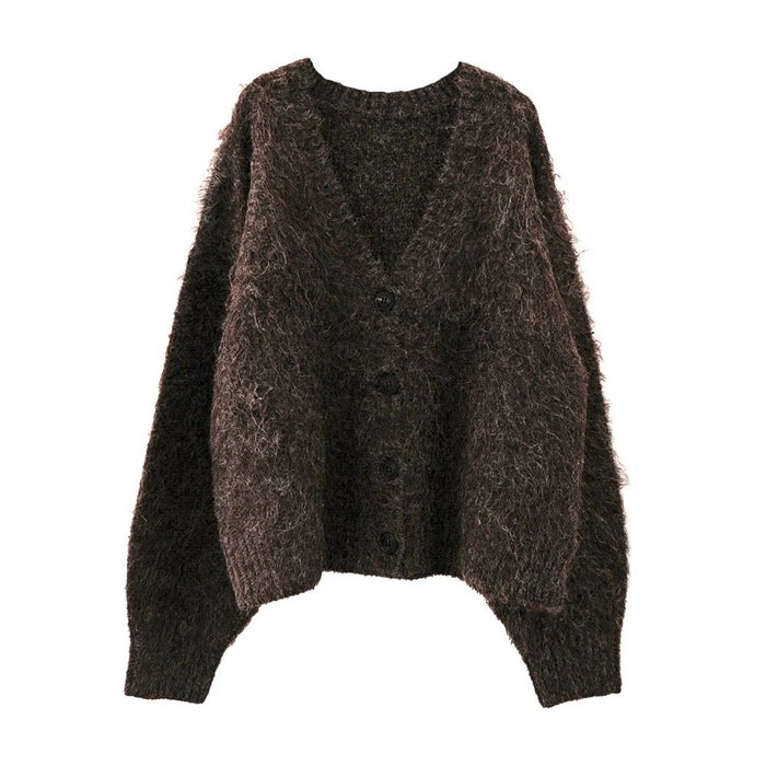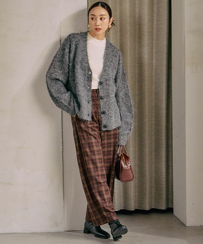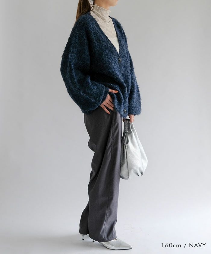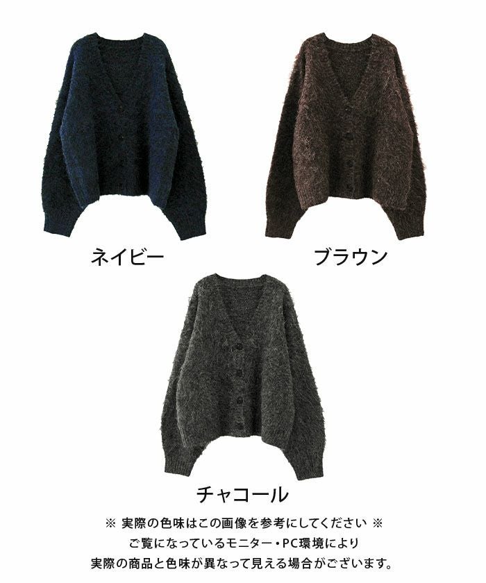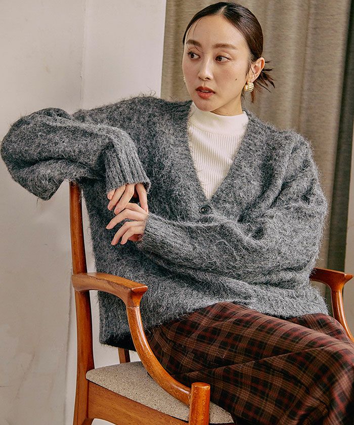 ふわふわ質感のシャギーがアクセントになり、シンプルな着こなしも一気に華やかに仕上げてくれる主役級カーディガンです。