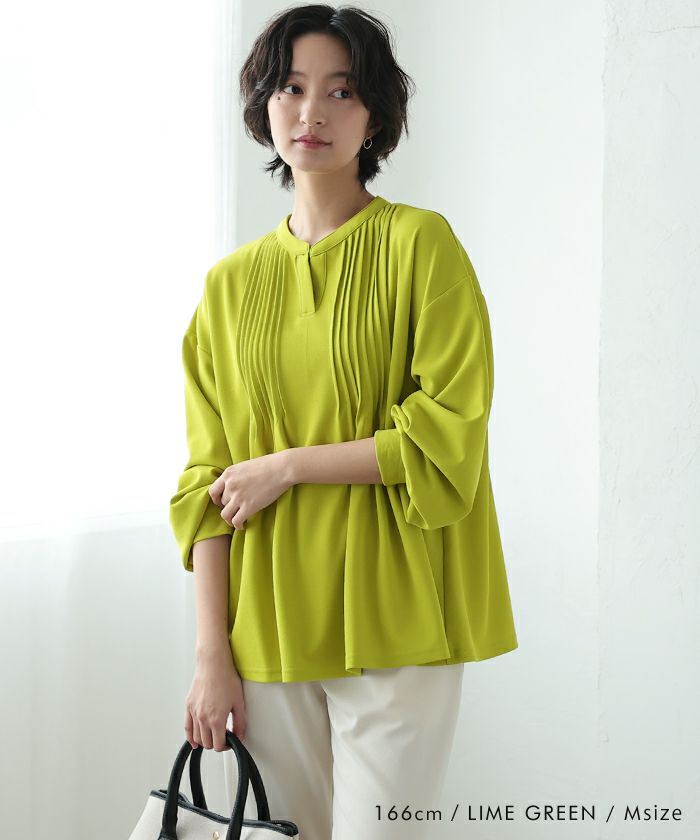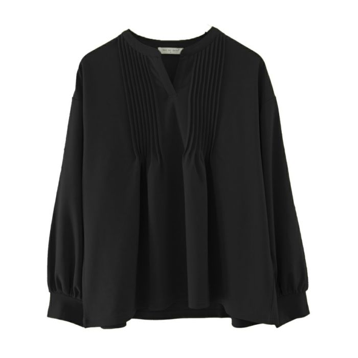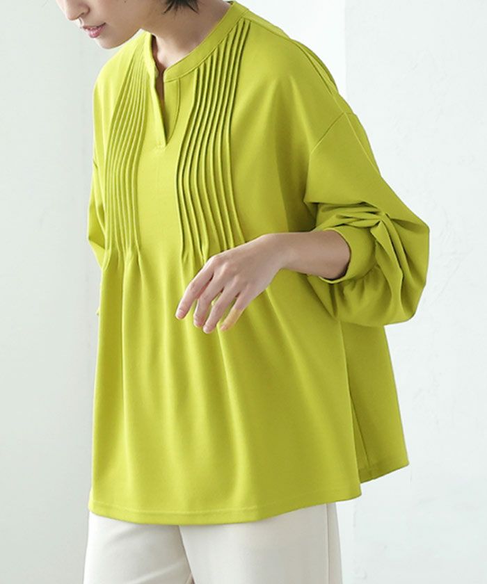 • 胸元のピンタックが特徴的なキーネックブラウス