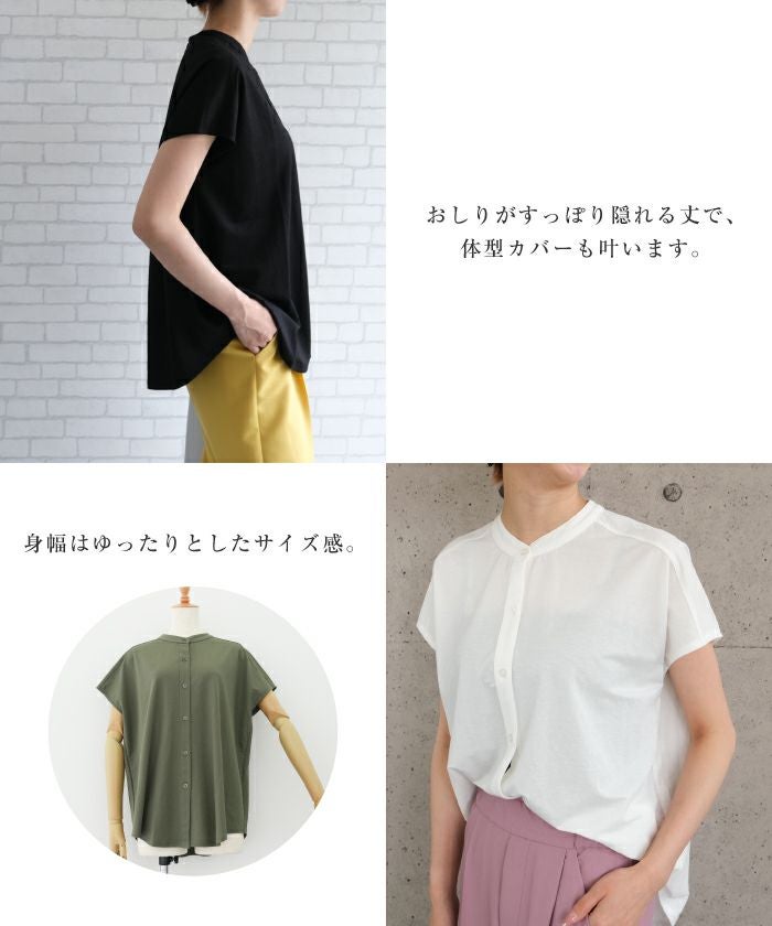 • 接触冷感スタンドカラーブラウス
