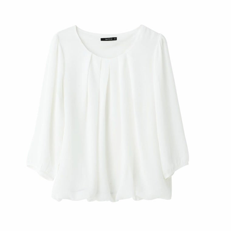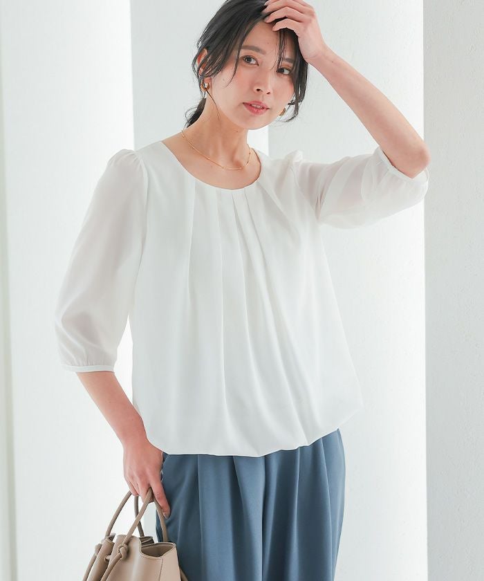 ふんわりと軽やかなシフォン素材で仕立てた、七分袖ブラウス。