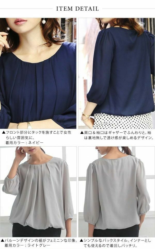 送料無料 フロントタックシフォンブラウス レディース S M L XL LL 3L 4L 七分袖 春夏秋 ≪ゆうメール便配送20・代引不可≫ | アクアガレージ aquagarage