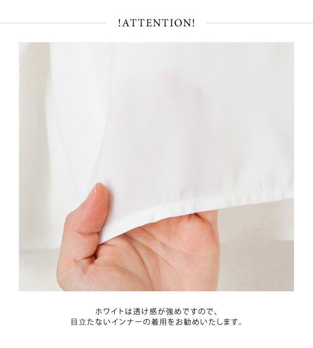 ※ホワイトは透け感が強めですので、目立たないインナーの着用をおすすめ致します。