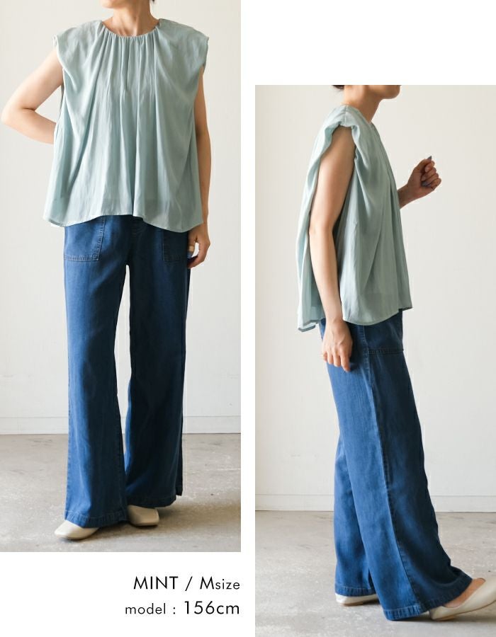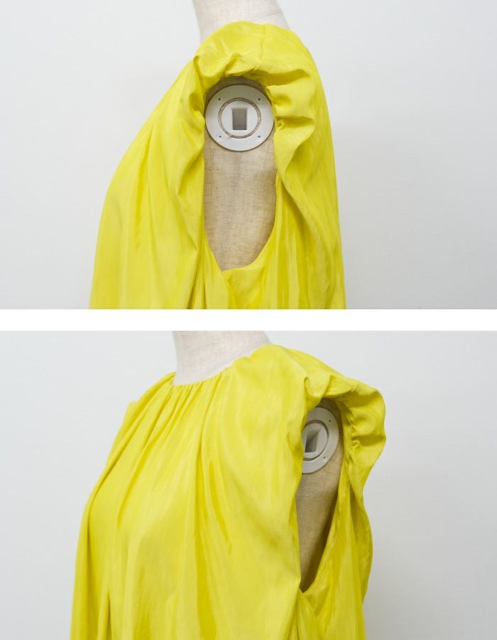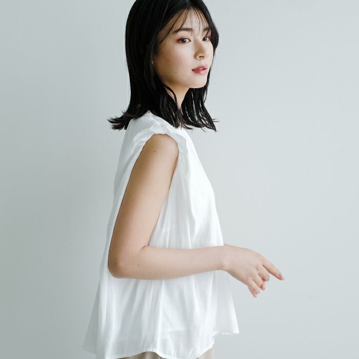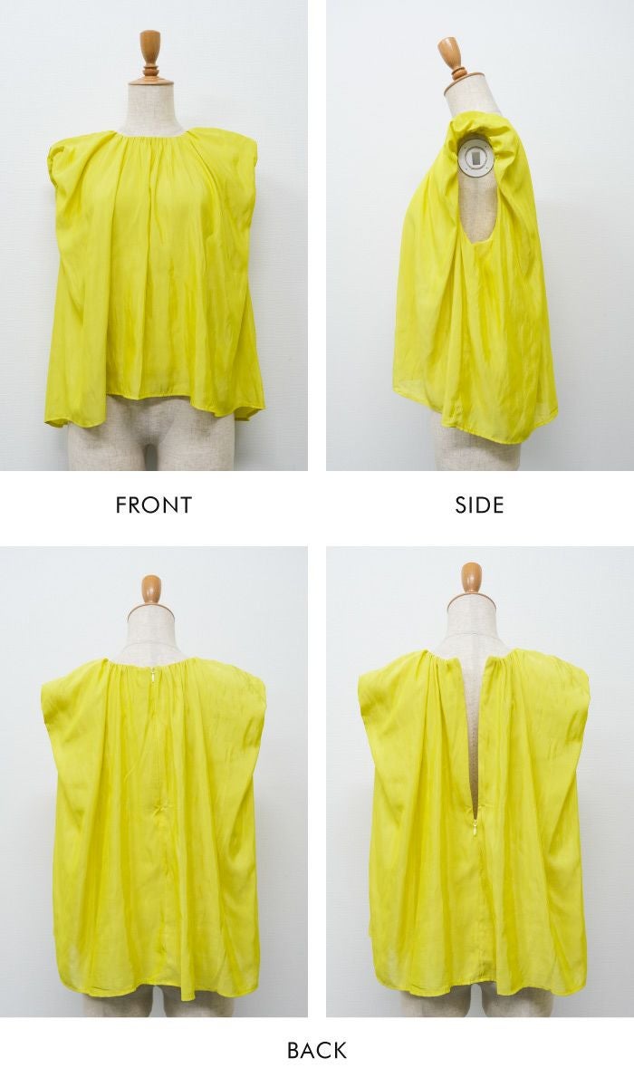 細やかなギャザーから生まれるドレープがフェミニンなブラウス。 光沢感のある上品な生地。2枚仕立てで透け感を抑えてくれます。 1枚着るだけで、すっきり綺麗見せしてくれるアイテムです。