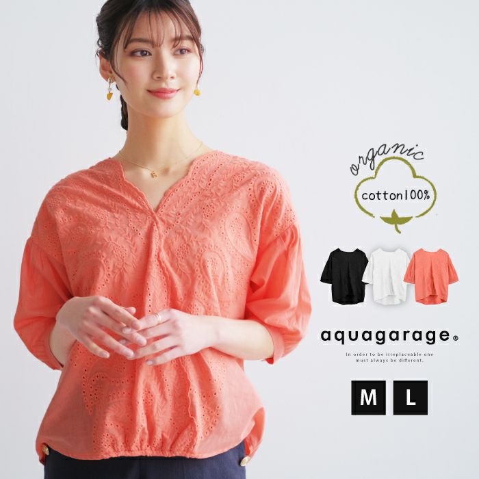 送料無料 パンチングレースブラウス レディース 春 夏 半袖 五分袖 5分袖 M L スカラップレース ≪ゆうメール便配送20・代引不可≫ | アクアガレージ aquagarage