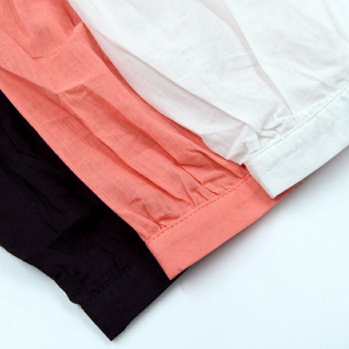 白を購入しましたが、薄手で透けます。夏に着るには涼しそうで可愛いです。 後ろが長くて、体型カバーも出来そうです。色違いで黒も欲しいなと思いました。