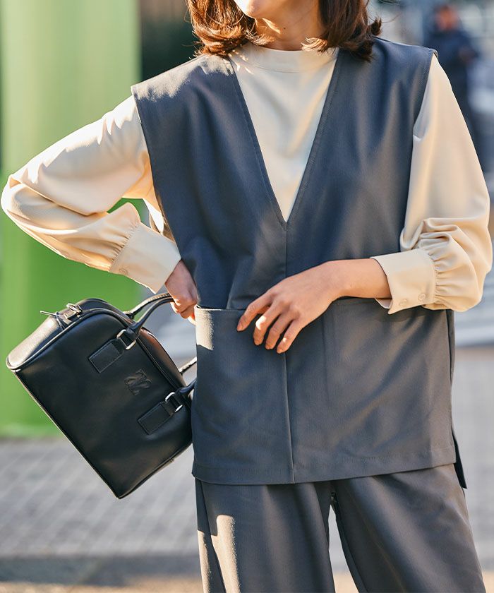 きれいめにまとめたい日は、テーパードパンツやジャケットと合わせるとオフィスにもぴったりな上品スタイルに。