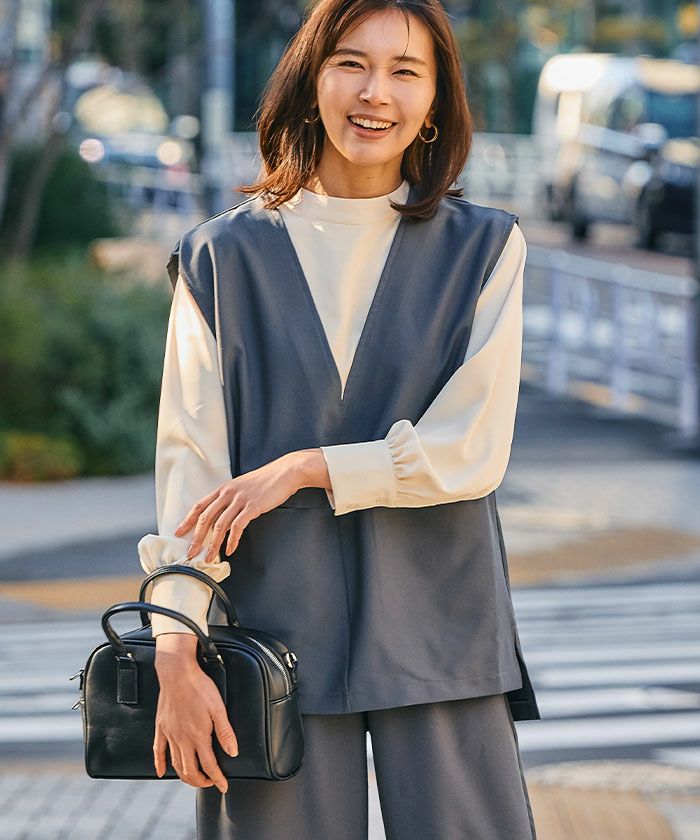 このブラウスは着回し力が高く、季節を問わず様々なスタイルに活躍します。