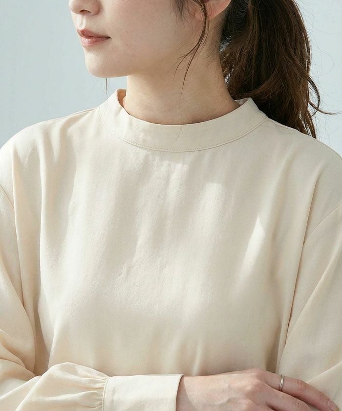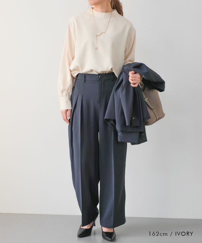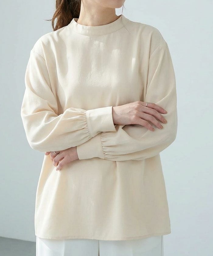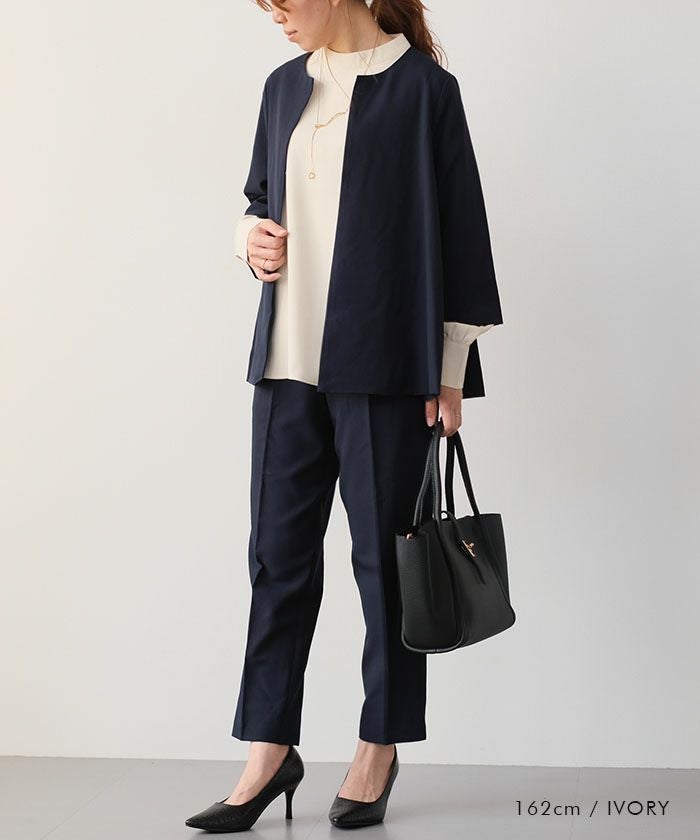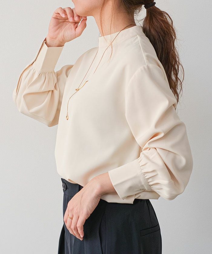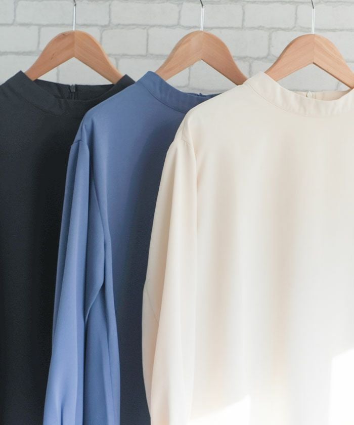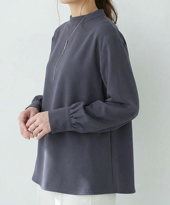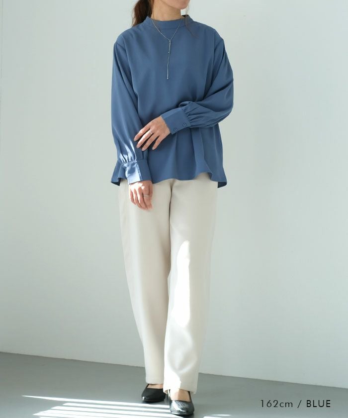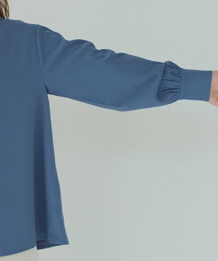 柔らかくさらりとしたポリエステル素材を使用し、季節の変わり目にも快適に着られるブラウスです。