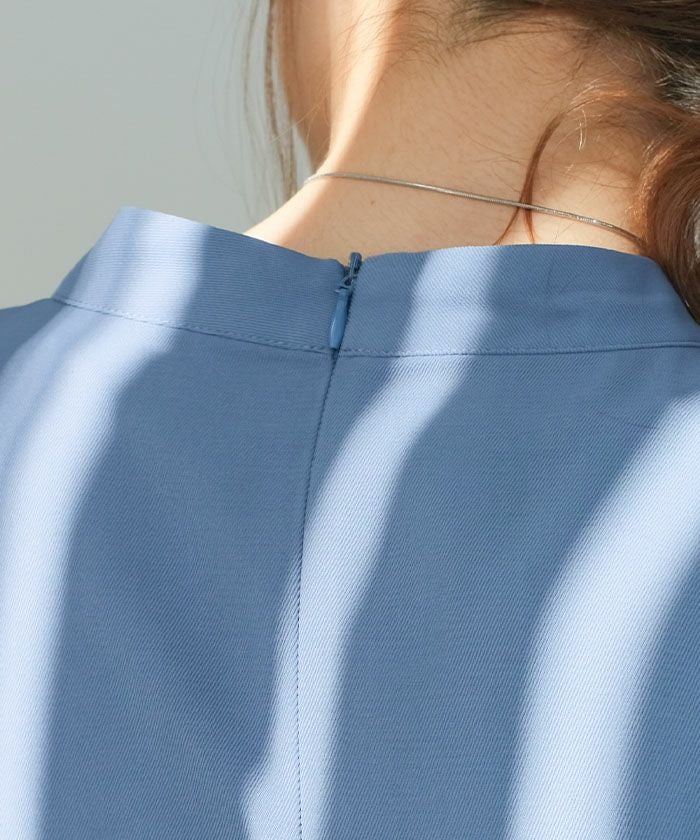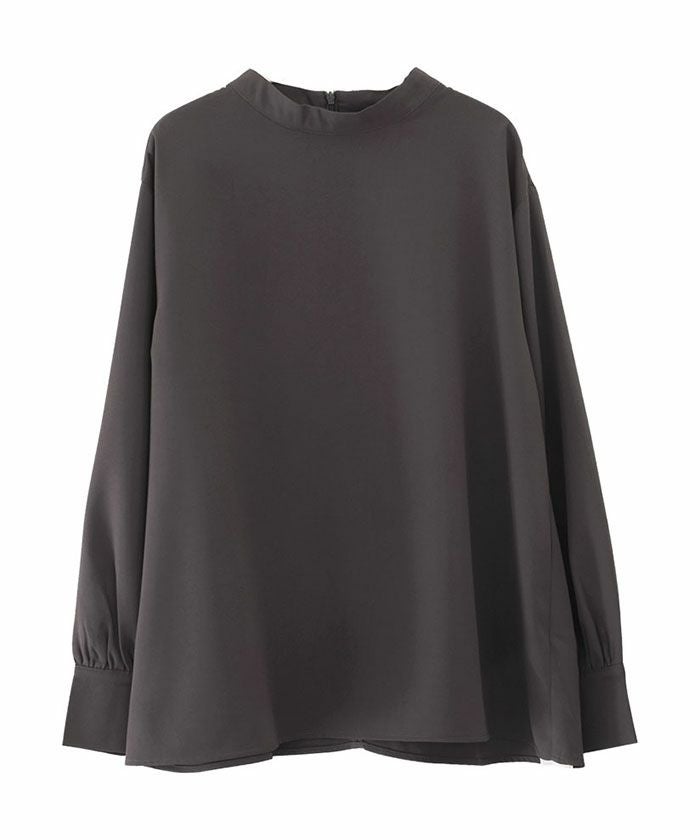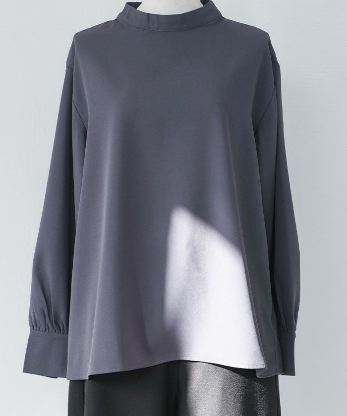 大人の抜け感と上品さを両立させた バンドカラーAラインブラウス は、首元をすっきり見せてくれるバンドカラー(立ち襟)デザインが特徴です。