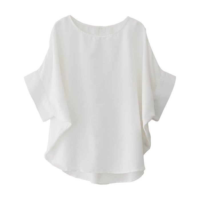 身頃もほどよくゆとりを持たせたシルエットで、身体のラインを拾いにくく、さらっと着るだけでバランスの取れた印象に。