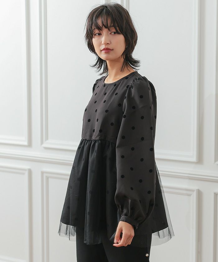 送料無料 パフスリーブドッキングドットペプラムトップス 春 秋 冬 | アクアガレージ aquagarage