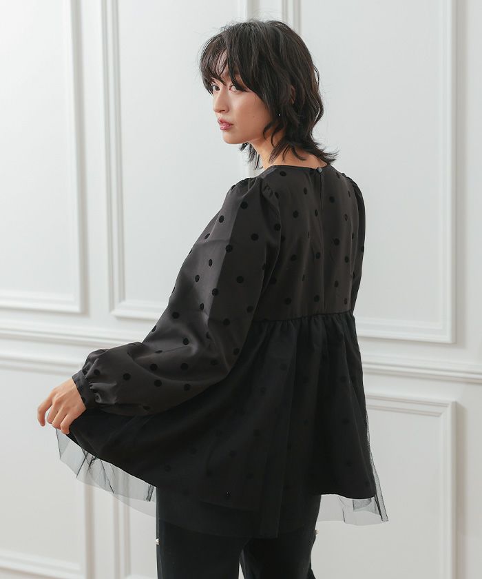 • ドッキングデザインで作る美シルエット!ドットペプラムトップス
