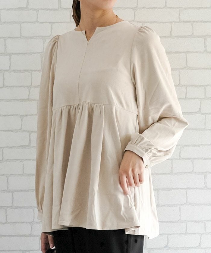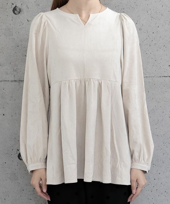 スエードキーネックペプラムトップス レディース 春 秋 冬 M ≪ゆうメール便配送20・代引不可≫|アクアガレージ aquagarage