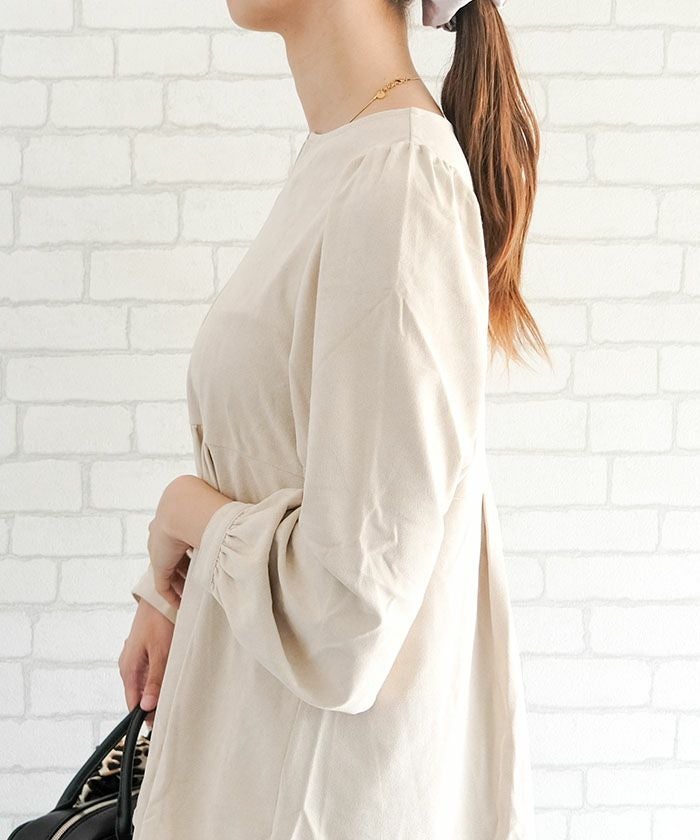 ペプラムデザインがウエストラインを自然にカバーし、スタイルアップ効果も期待できる一枚。