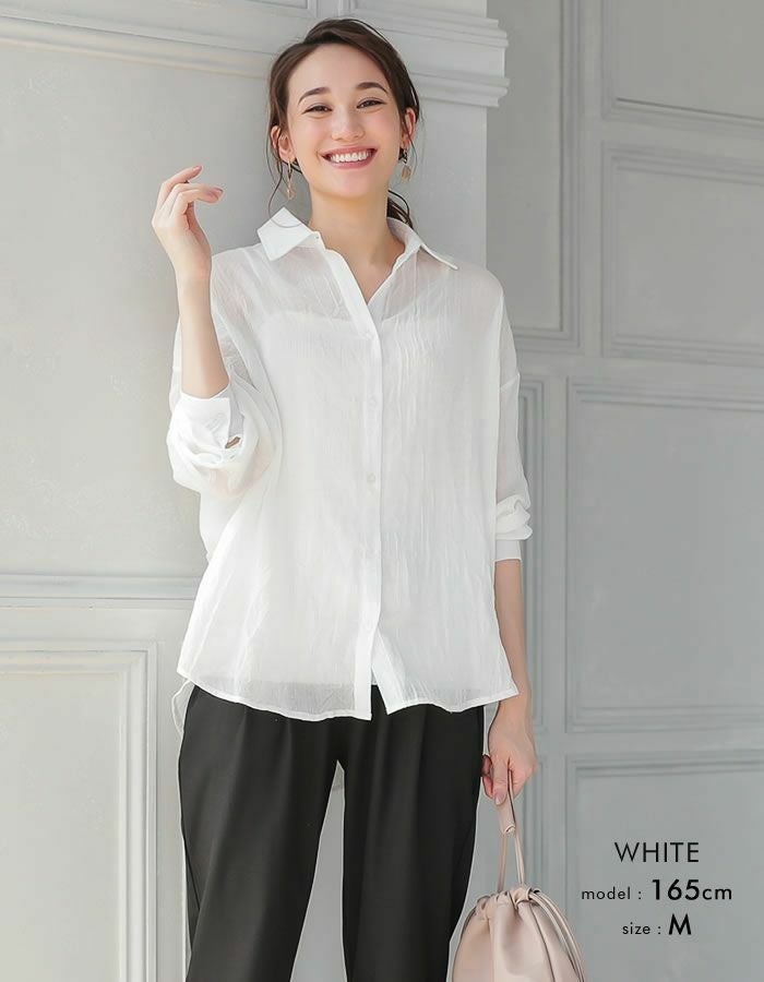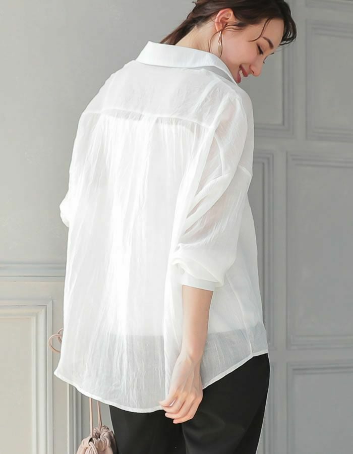 • ふんわりとした素材感とシアーな透け感が魅力のシアーガーゼシャツ。