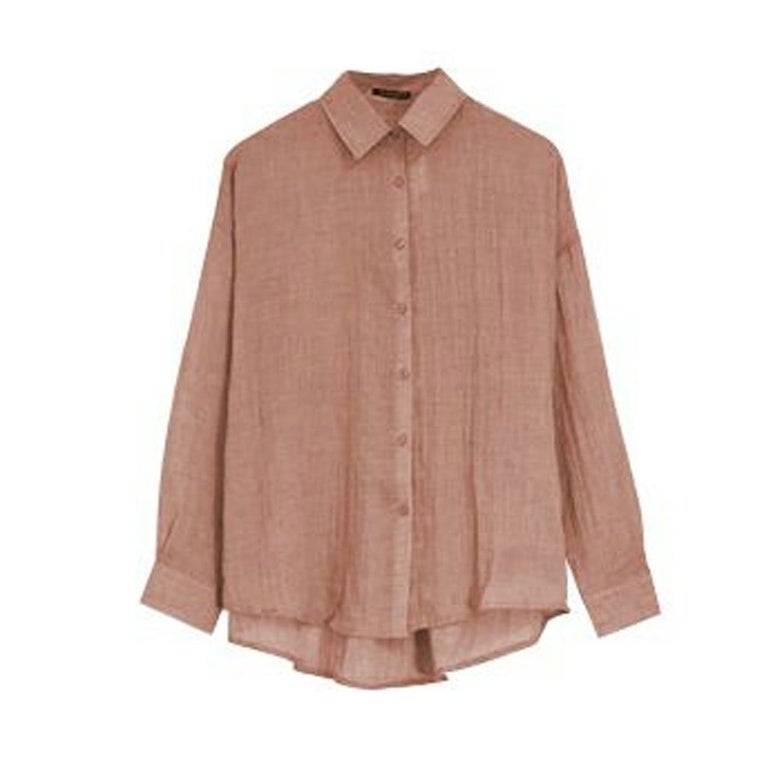 つるっとしていない生地感のある、薄手シャツです。襟があってカジュアルすぎず、おしゃれなシャツを探していたのですが、欲しいものにぴったりでした。大満足です。白も欲しいので、再販熱望します!
