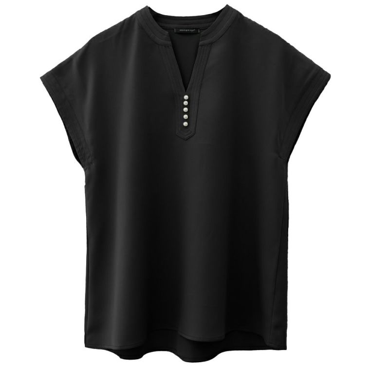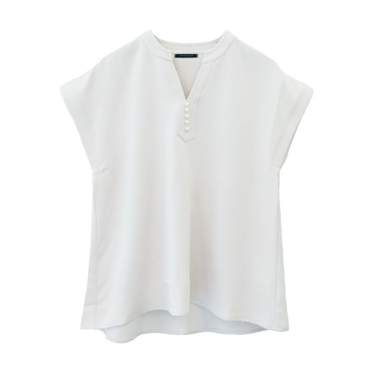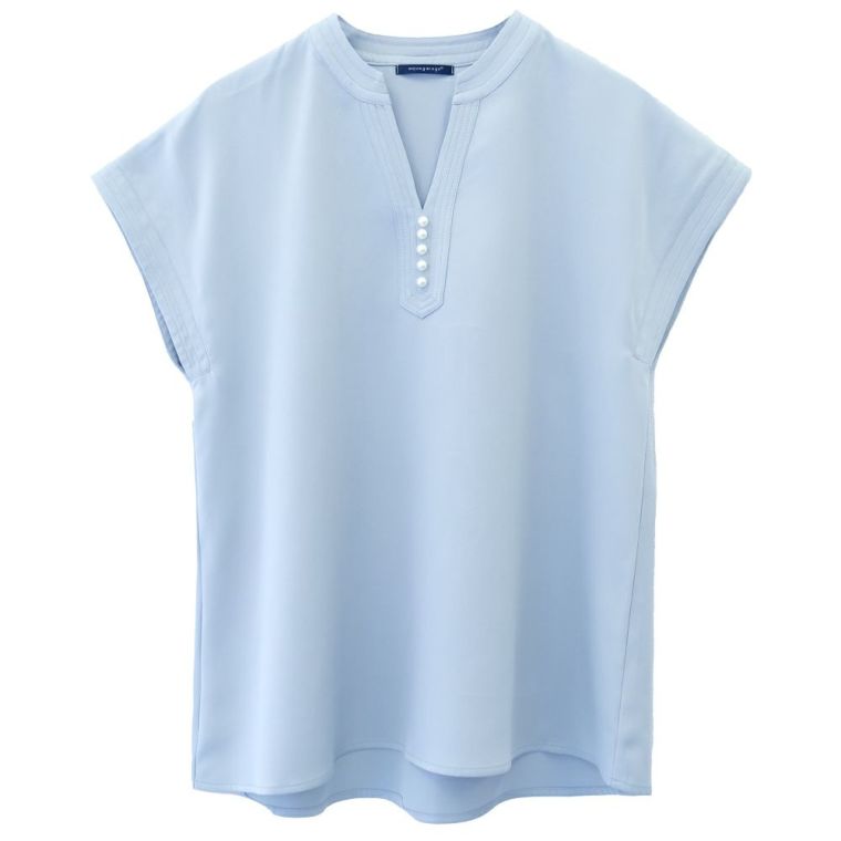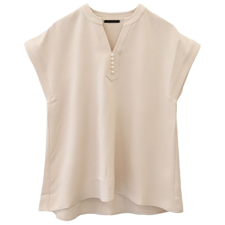 • 上品見えのキーネックにパールをあしらったキーネックブラウス。