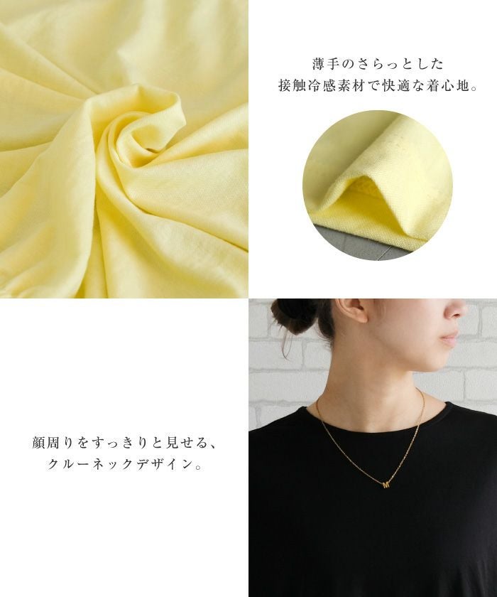 着るだけでひんやり快適、接触冷感素材のウエストシャーリングトップス。