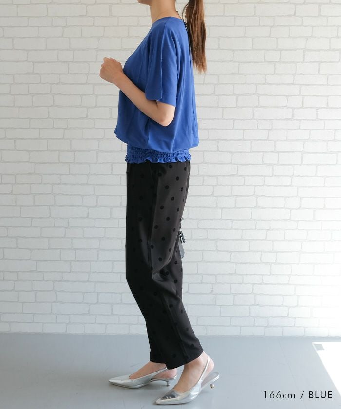 ウエスト部分のギャザーで美シルエットを叶えつつ、リラクシーな着心地も実現。