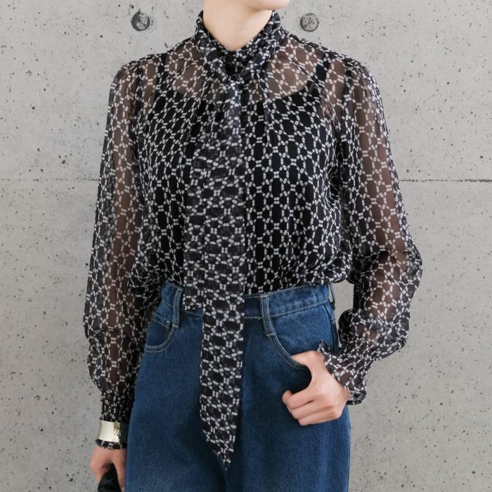 送料無料 総柄長袖ボウタイブラウス 春 秋 冬 レディース ≪ゆうメール便配送20・代引不可≫ | アクアガレージ aquagarage