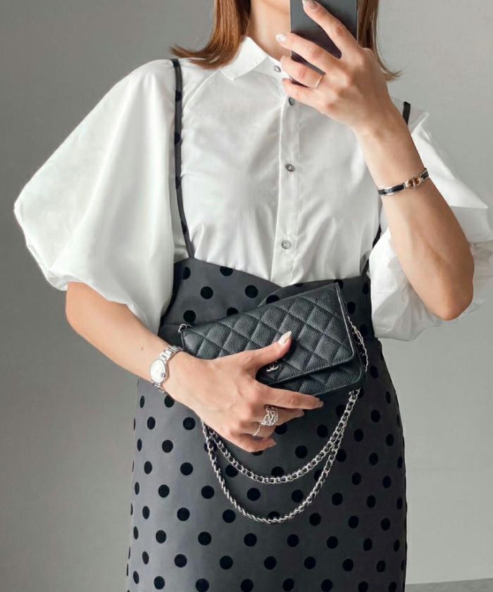 ふんわりとした袖が特徴的なデザインで、女性らしい柔らかな印象を与えてくれます。