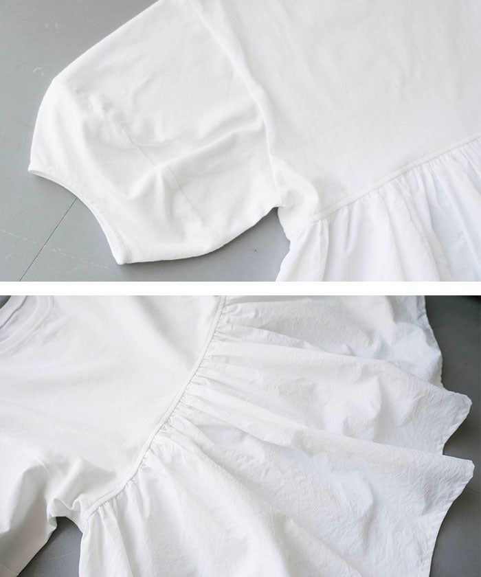 異素材切り替えペプラムトップス 春 夏 M | ≪ゆうメール便配送20・代引不可≫アクアガレージ aquagarage